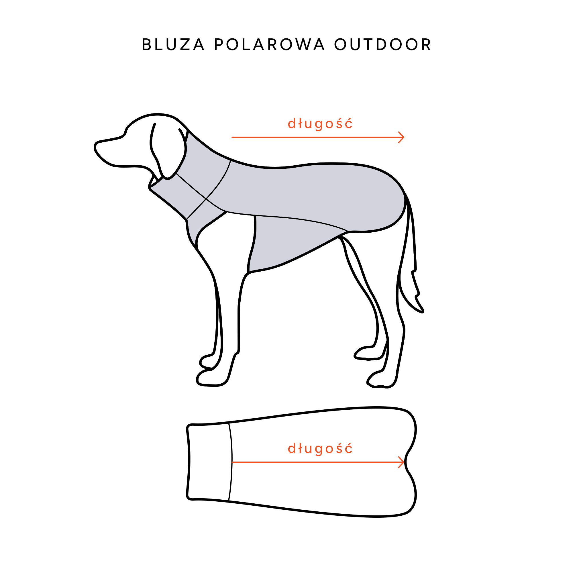 Bluza polarowa dostępna jest w ośmiu rozmiarach, co pozwala na dopasowanie ubranka do psów średnich i dużych ras. Bluza idealnie sprawdzi się u psów takich jak lagotto romagnolo, bulterier, labrador, golden retriever, border collie czy wyżeł. Kluczem do właściwego dopasowania jest zmierzenie długości grzbietu od podstawy szyi do nasady ogona. Elastyczność lycry w dolnej części bluzy pozwala na pewną tolerancję w doborze rozmiaru. Właściwie dobrana bluza powinna przylegać do ciała psa w części z lycry, ale nie uciskać. Polar na wierzchu może być nieco luźniejszy, co zapewni lepszą izolację termiczną.