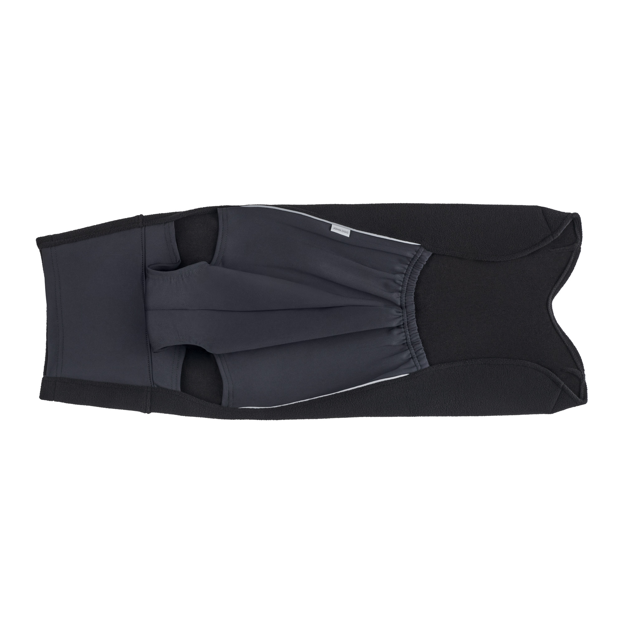 Bluza dla psa John Dog wyróżnia się zastosowaniem dwóch komplementarnych materiałów. Wierzchnia warstwa z polaru charakteryzuje się doskonałymi właściwościami termoizolacyjnymi. Spód bluzy wykonany z lycry to prawdziwa rewolucja w projektowaniu psich ubranek. Ten elastyczny, śliski materiał idealnie przylega do ciała czworonoga, eliminując nieprzyjemne tarcie i zapewniając maksymalną swobodę ruchów. Czarny kolor polaru jest bardzo uniwersalny i doskonale komponuje się z outdoorowym stylem życia aktywnych psów. Kluczowym elementem bezpieczeństwa są strategicznie rozmieszczone elementy odblaskowe. Wszyta na grzbiecie metka odblaskowa zapewnia widoczność z góry, a odbijające światło przeszycia na łączeniach materiałów tworzą dodatkowe punkty świetlne, które zwiększają rozpoznawalność sylwetki psa z różnych kątów.
