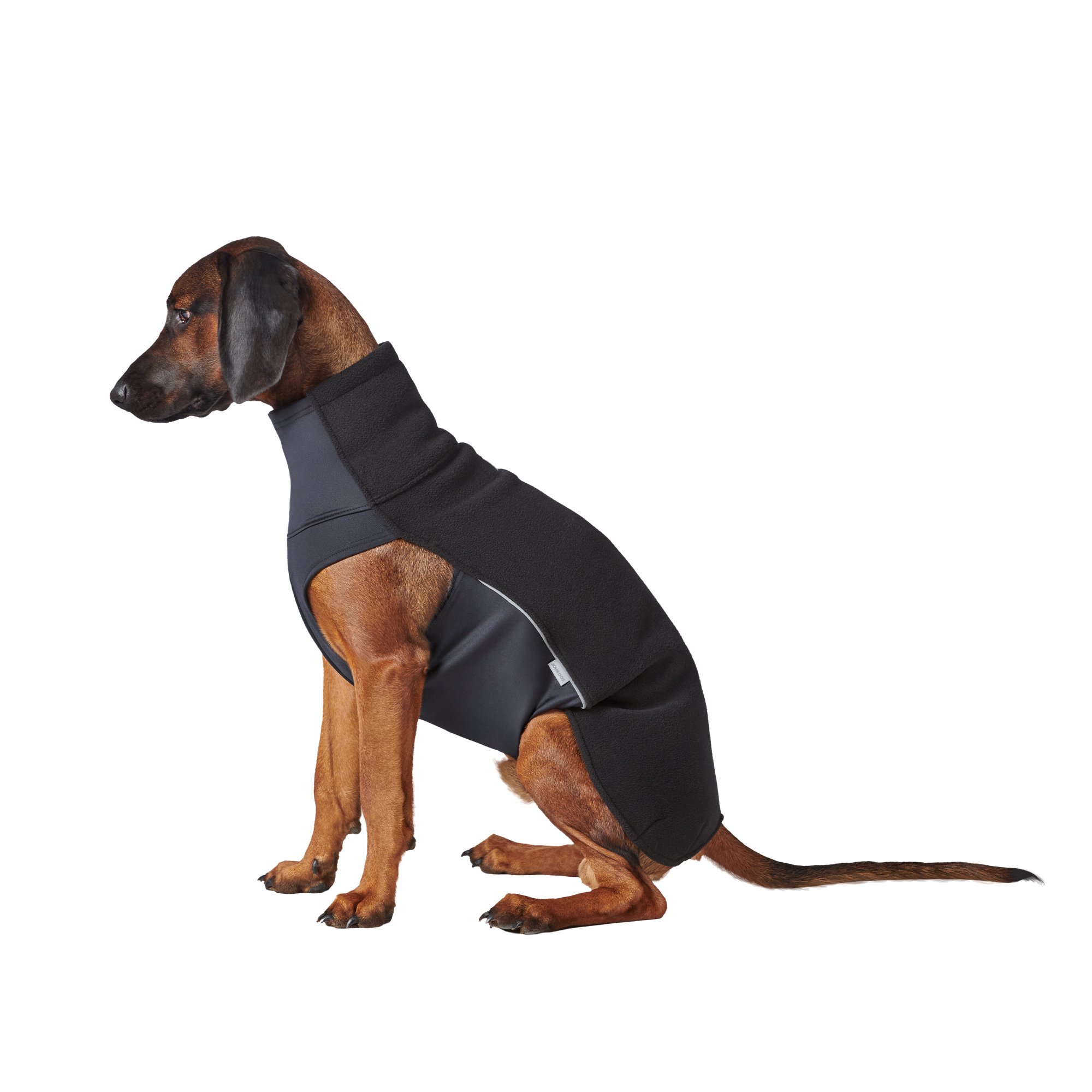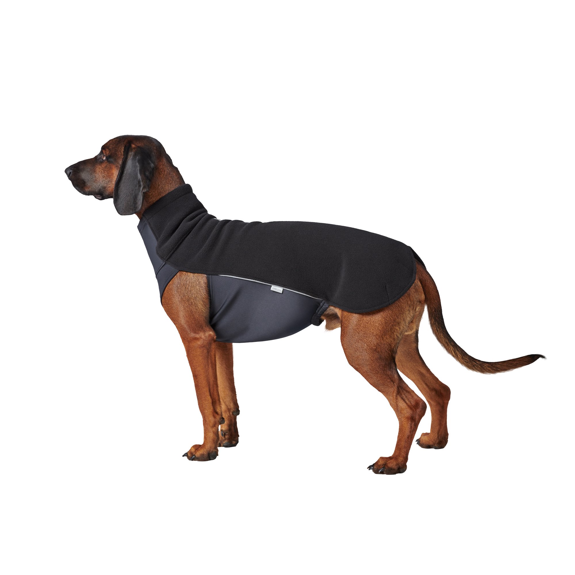 Konstrukcja ubranka opiera się na przemyślnym połączeniu dwóch materiałów o komplementarnych właściwościach. Wierzchnia warstwa z polaru (100% poliester) skutecznie zatrzymuje ciepło ciała dzięki swojej puszystej strukturze, która tworzy liczne kieszenie powietrzne działające jak naturalny izolator. Spód bluzy wykonany z lycry charakteryzuje się wyjątkową rozciągliwością. Śliski charakter lycry minimalizuje tarcie między ubraniem, a sierścią psa, co zapobiega powstawaniu kołtunów i zapewnia komfort noszenia.