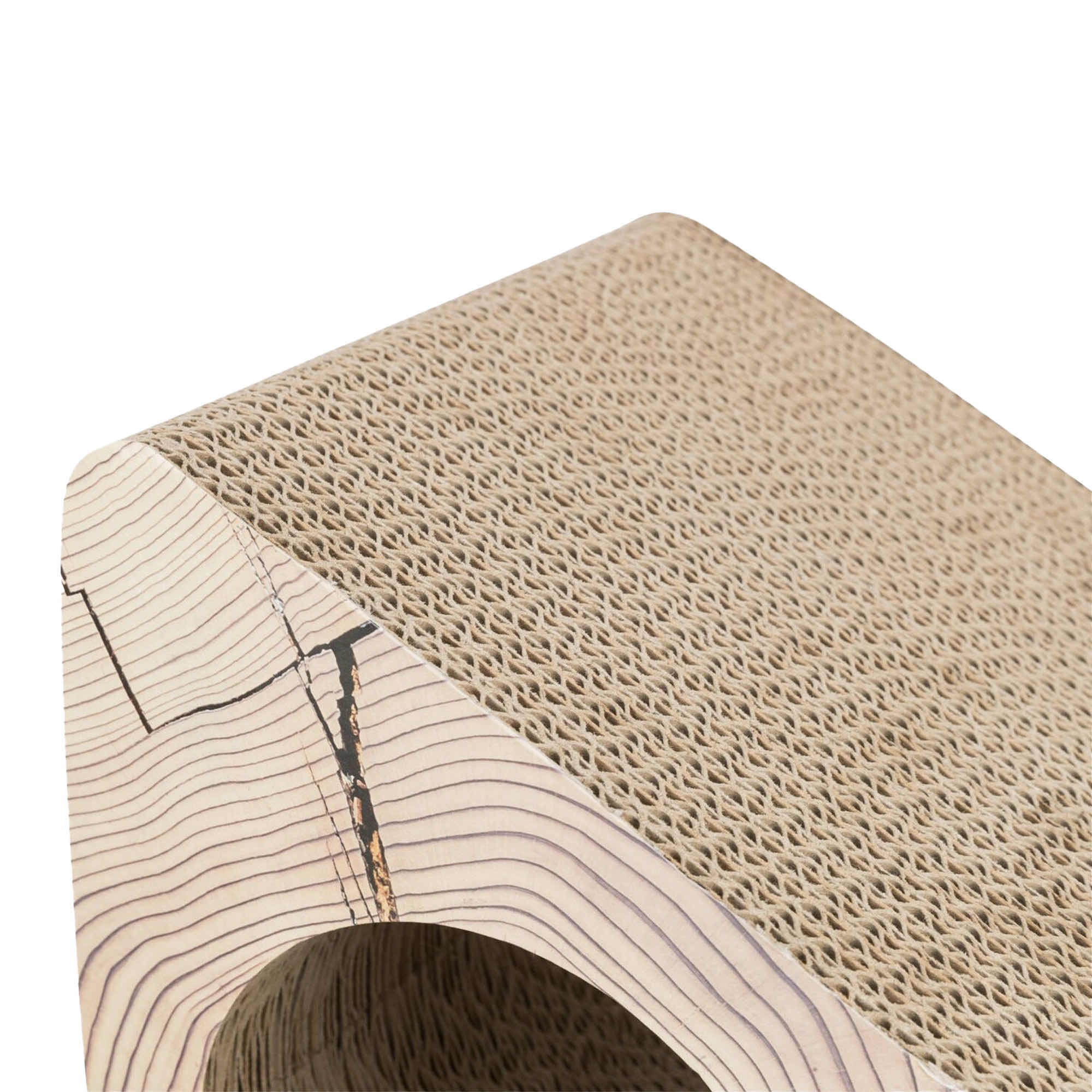 Drapak pomostowy z tektury ekologicznej Wymiary drapaka: 44 × 23 × 21 cm.