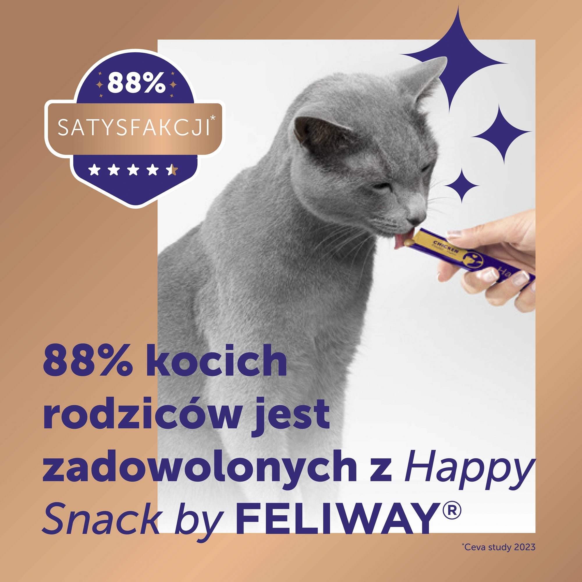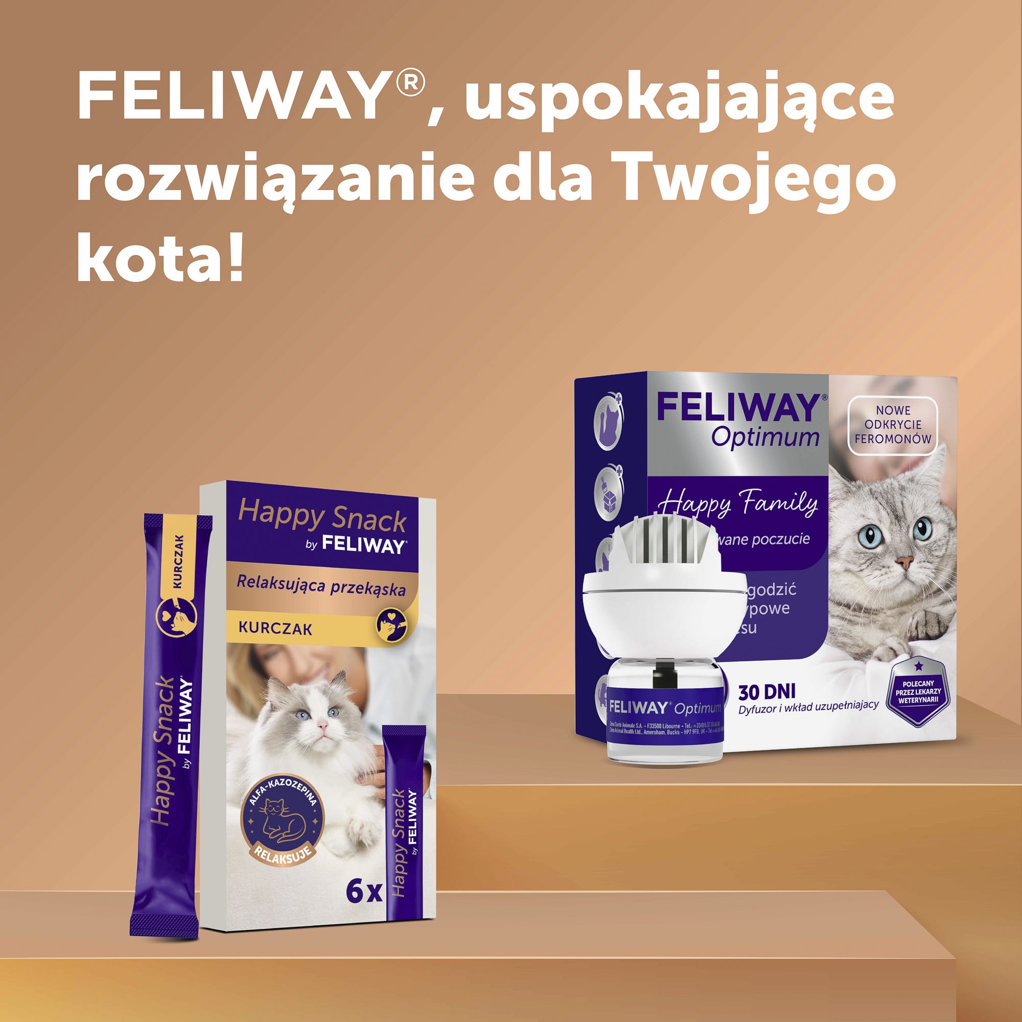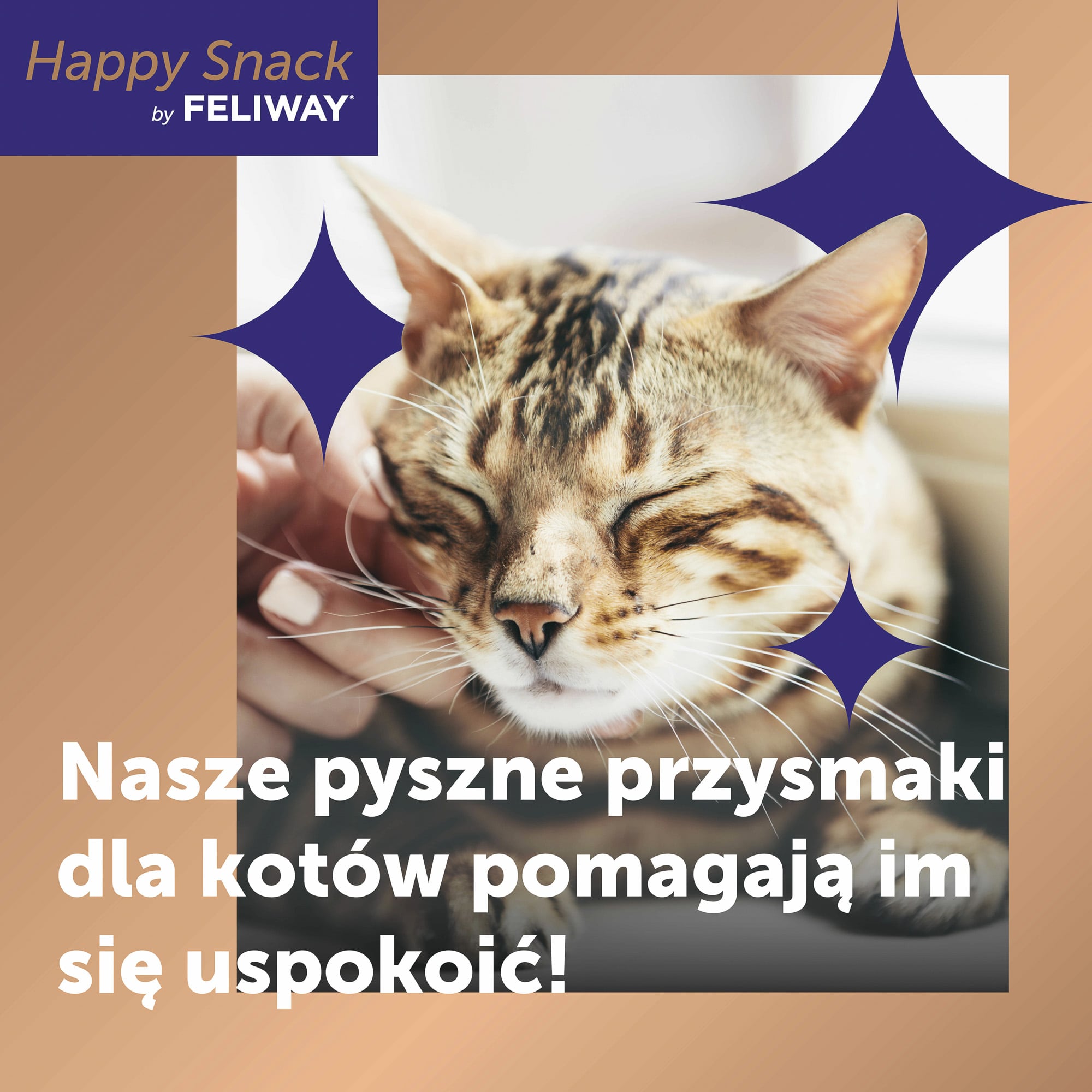 Happy Snack by FELIWAY z alfa-kazozepiną pomaga naszym kotom radzić sobie z nieoczekiwanymi lub nietypowymi sytuacjami, które są dla nich źródłem stresu.