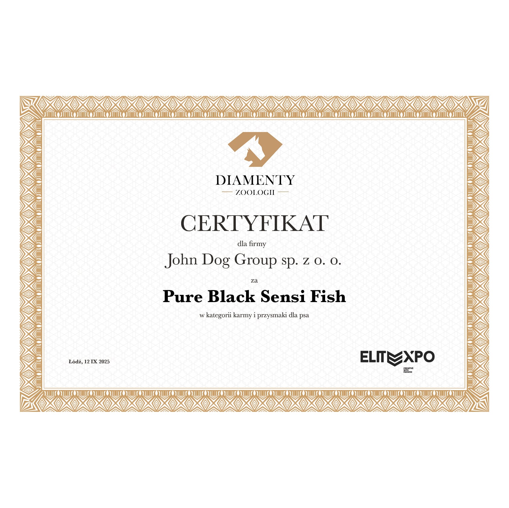 John Dog Pure Black Sensi Fish to hipoalergiczna karma monobiałkowa stworzona z myślą o psach dorosłych z wrażliwym układem pokarmowym i skłonnością do alergii pokarmowych. Karma zawiera 99% dorsza (ryba i bulion) jako jedyne źródło białka zwierzęcego, co czyni ją idealnym rozwiązaniem dla psów z nietolerancją pokarmową na inne rodzaje mięsa. Bezzbożowa receptura z prostym składem minimalizuje ryzyko wystąpienia reakcji alergicznej, zapewniając jednocześnie pełnowartościowy posiłek o stosunkowo niskiej zawartości tłuszczu. Karma została nagrodzona certyfikatem Diamenty Zoologii, co potwierdza jej wyjątkową jakość i uznanie specjalistów ds. żywienia zwierząt.