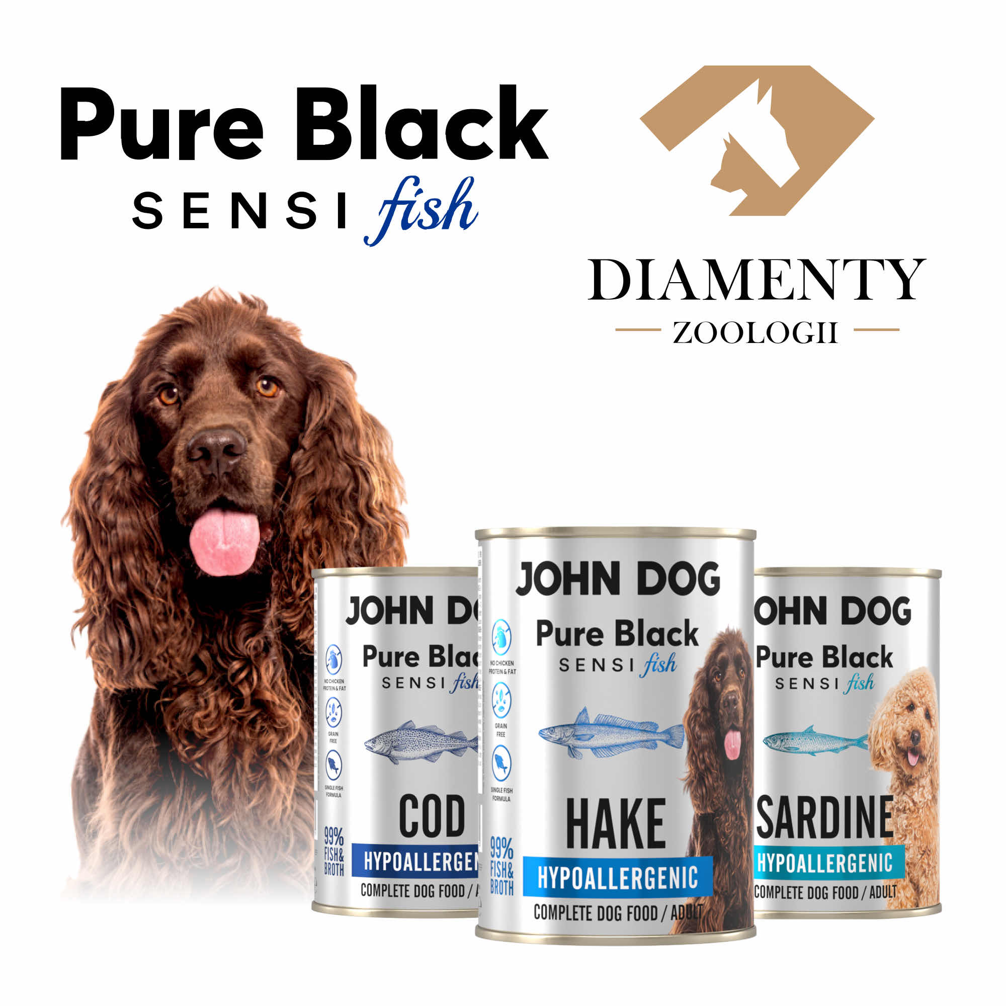 John Dog to marka specjalizująca się w produkcji wysokiej jakości karm dla psów o szczególnych potrzebach żywieniowych. Linia Pure Black Sensi Fish została opracowana z myślą o psach z alergią pokarmową i problemami trawiennymi. Każdy produkt z tej serii charakteryzuje się prostym składem i jednym źródłem białka zwierzęcego, co minimalizuje ryzyko wystąpienia reakcji alergicznej. Marka stawia na naturalne składniki najwyższej jakości, rezygnując z niepotrzebnych dodatków i sztucznych składników. Wszystkie karmy z tej linii karm zapewniają doskonale zbilansowaną dietę dostosowaną do potrzeb psów z wrażliwym żołądkiem i wymagających łatwostrawnych posiłków.