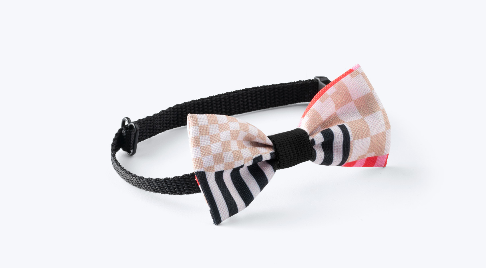 Do wyboru mucha dla małego psa lub większego. Ma możliwość regulacji w obwodzie. Muszka jest tak lekka, że Twój pupil nie poczuje, że coś zdobi jego szyję. Dodatkowym atutem jest autorski nadruk łączący w sobie klasyczną kratkę w odcieniach: czerni, bieli, beżu i różu.