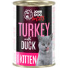 Mus z indykiem i kaczką to w 100% naturalna karma mokra, której receptura jest wolna od wielu niepożądanych składników. Karma nie zawiera zbóż, glutenu, sztucznych barwników i konserwantów oraz wzmacniaczy smaku. Produkt nie zawiera GMO ani zbędnych wypełniaczy, co gwarantuje najwyższą jakość składników odpowiednią dla wrażliwego organizmu kociąt. Bezzbożowa formuła czyni karmę idealną dla młodych kotów z alergią na zboża.