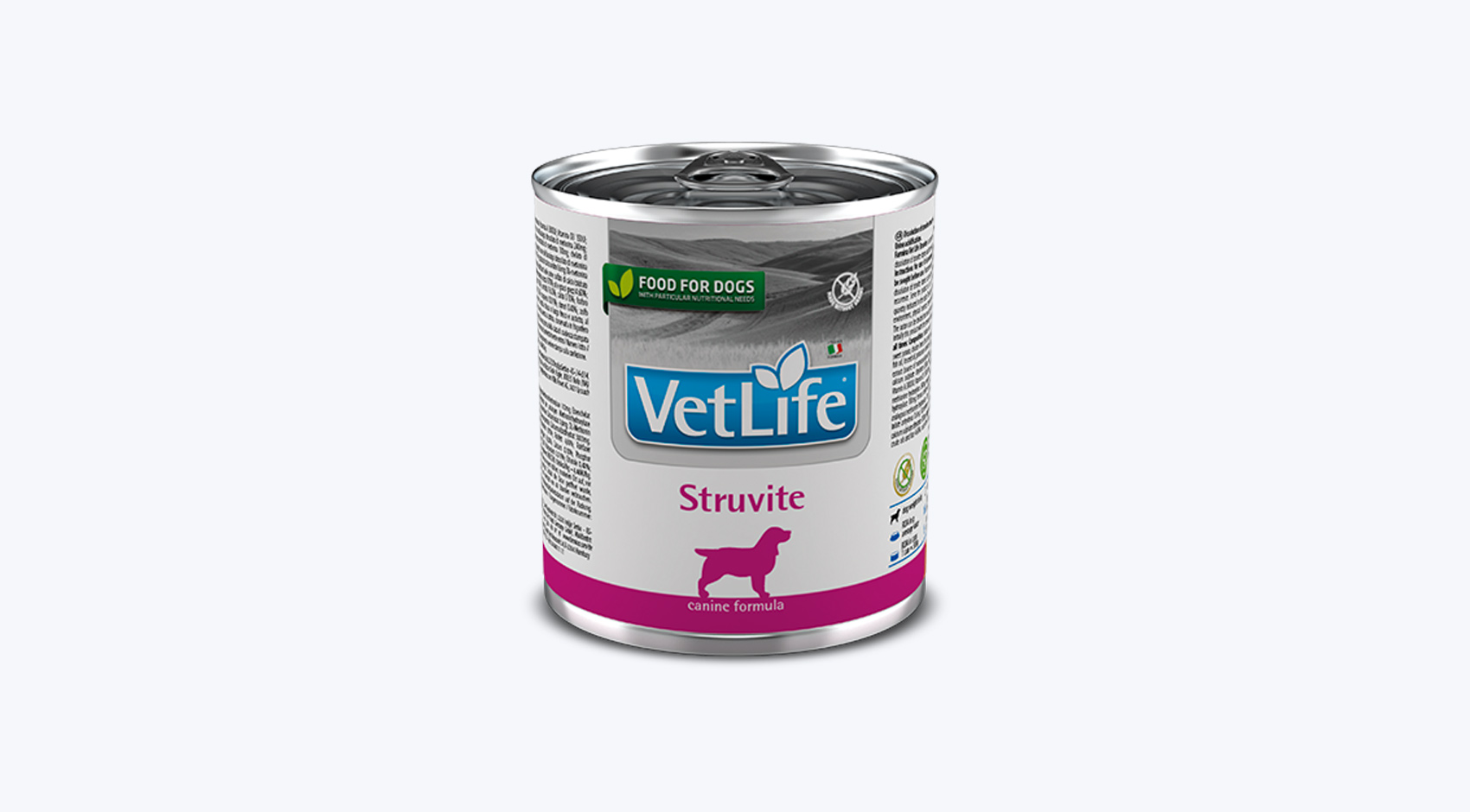 Weterynaryjna karma mokra dla psów cierpiących na kamicę struwitową.