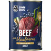 Smakowite świeże mięso i podroby wołowe z dodatkiem marchwi, minerałów i witamin. Przygotowane w sosie własnym bez dodatku wody i bulionu. Karma została przygotowana na bazie starannie wyselekcjonowanych składników pozyskanych lokalnie. Dzięki monoproteinowej (opartej na jednym źródle białka) kompozycji może być podawana psom podatnym na alergie. Główny składnik karmy – wołowina – jest cennym źródłem pełnowartościowego i łatwo przyswajalnego białka, a także jednym z rodzajów mięsa najbogatszych w żelazo. Produkt nie zawiera sztucznych konserwantów, barwników ani wzmacniaczy smaku. Bez dodatku zbóż zawierających gluten.