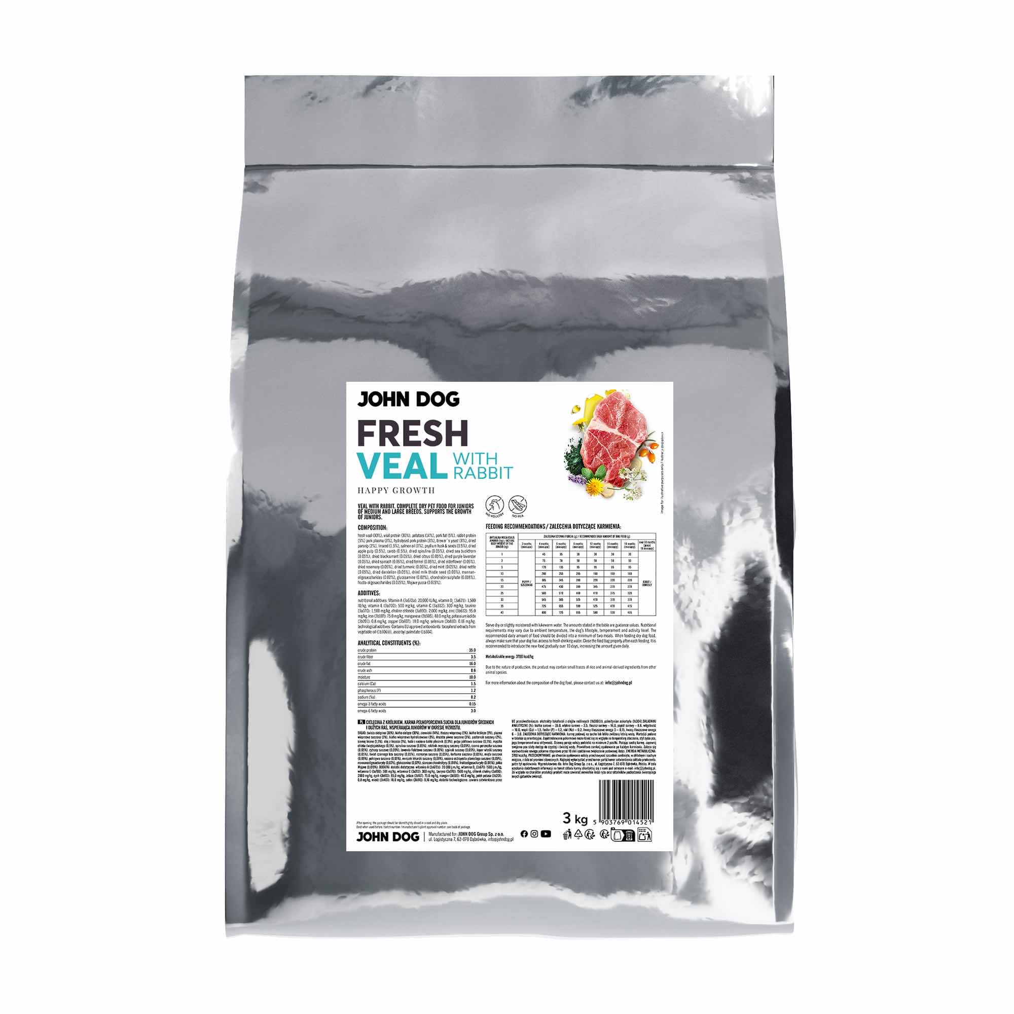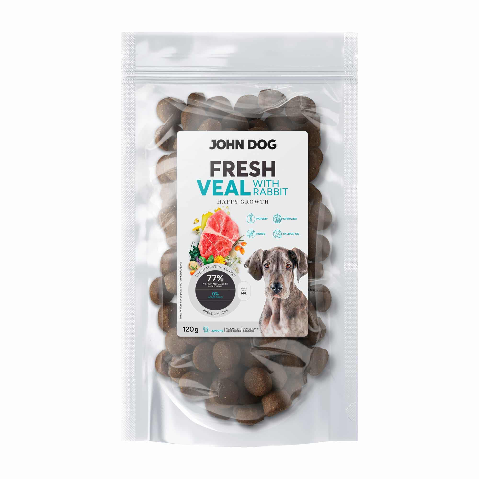 Karma sucha dla szczeniaka Cielęcina z królikiem John Dog Fresh Puppies