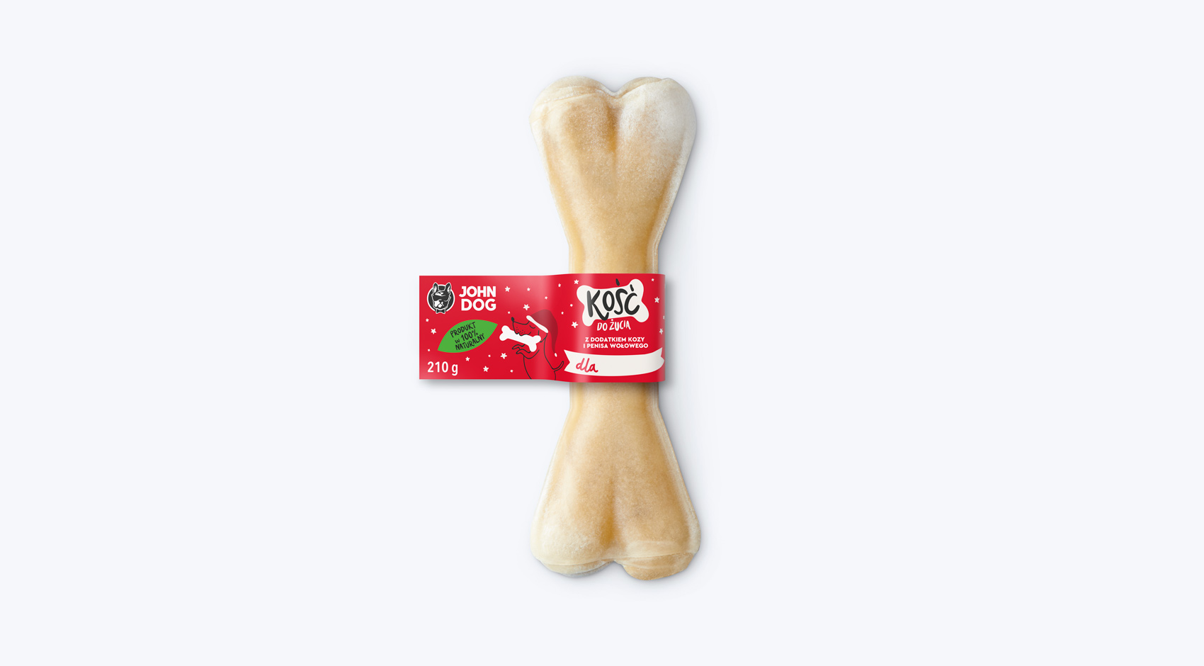 Kości do żucia wyprodukowano ze skór wołowych, garbowanych bez użycia chromu. Tego typu surowiec wykorzystywany jest m.in. do produkcji kolagenu, żelatyny spożywczej czy osłonek do wędlin. Surowiec po przeklasyfikowaniu ma zastosowanie w produkcji gryzaków. Wypełnienie kości zostało zmielone i otoczone skórą wołową. Produkt wyłącznie dla psów.