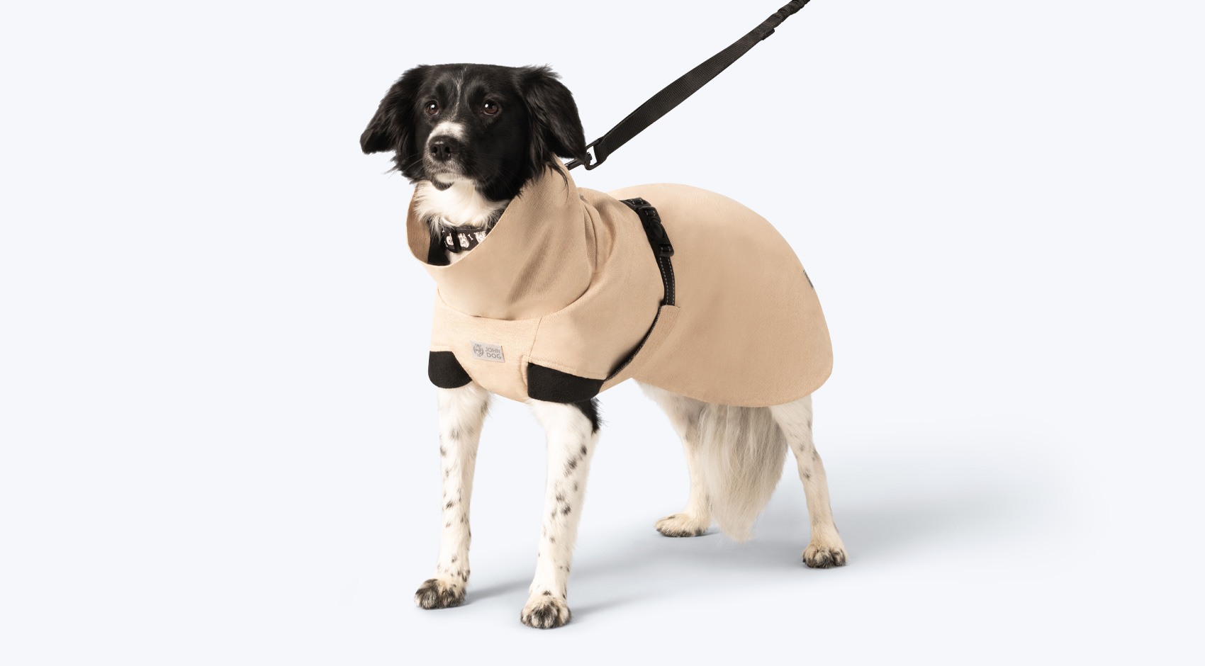 Beżowa kurtka idealna na chłodny jesienny lub zimowy dzień. Sprawdzi się zarówno podczas opadów deszczu i śniegu oraz ochroni psa przed chłodnym wiatrem. Wierzchnia tkanina kurtki wykonana z poliestru pokrytego powłoką odpychającą wodę. Spód składa się natomiast z 3 warstw: pojedynczej warstwy watoliny, siatki ochronnej oraz cienkiej, szybkoschnącej tkaniny technicznej. Kurtka jest śliska od wewnątrz, dzięki czemu nie czepia się sierści i swobodnie okrywa grzbiet. Podszewka jest pikowana w drobną kratkę, co daje jej jeszcze więcej szyku i sportowej elegancji. Golf od strony wewnętrznej pokryty miękkim i miłym w dotyku mikropolarem. Można go wyregulować za pomocą gumki ze stoperem w tunelu i dzięki temu dopasować kołnierz do obwodu szyi psa, można go również wywinąć skracając jego wysokość. Kurtka ma otwór na kółko od obroży oraz naszytą odblaskową metkę. Obwód klatki piersiowej również można swobodnie wyregulować za pomocą paska z odblaskiem zapinanego na obrotową klamrę. Jeśli chodzi o długość grzbietu, to podobnie jak w przypadku golfa, w tylnej części znajduje się tunel z gumką i stoperem. Aby kurtka nie przesuwała się nawet podczas przemierzania miejskiej dżungli lub leśnych bezdroży produkt wyposażono w gumki na tyle łapy. Produkt można prać w 40 st. C, z delikatnym wirowaniem. Należy ją suszyć na lewej stronie. Kurtka dostępna także w kolorze czarnym, morskim, czerwonym i zielonym. Dostępna w ośmiu rozmiarach, dzięki czemu możesz optymalnie dopasować kurtkę do wielkości Twojego psa.