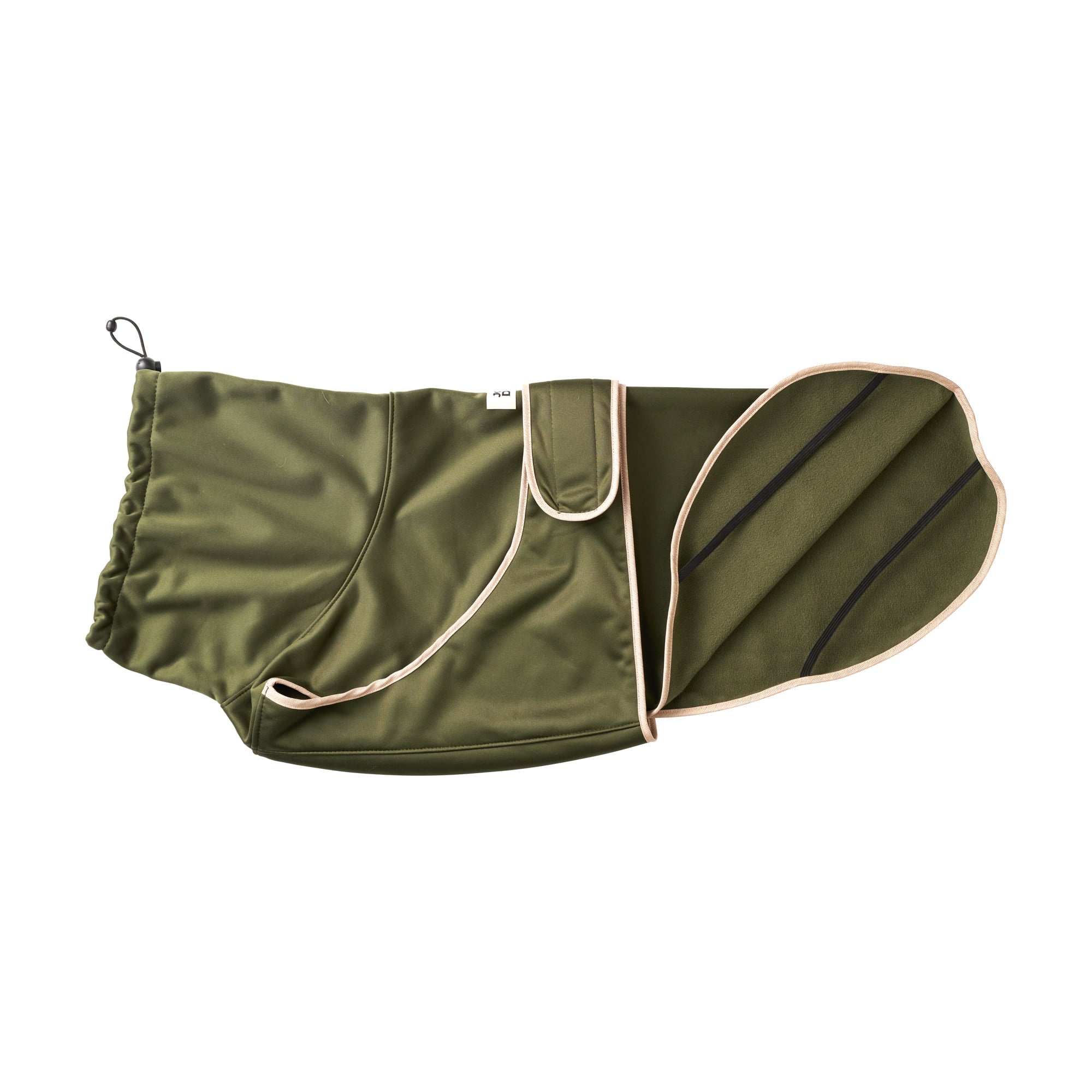 Kurtka Softshell John Dog wyróżnia się przede wszystkim zastosowaniem zaawansowanej technologii materiałowej, która łączy właściwości wiatroszczelne z doskonałą przepuszczalnością pary wodnej. Zewnętrzna warstwa wykonana z tkaniny softshell charakteryzuje się gładką powierzchnią, która skutecznie odpycha krople deszczu i blokuje przenikanie wiatru, jednocześnie pozwalając skórze psa na swobodne oddychanie. Sportowy wygląd kurtki podkreśla jej nowoczesny design i ergonomiczny krój, który idealnie dopasowuje się do naturalnej sylwetki psa. Ciemna oliwkowa barwa nadaje kurcie elegancki charakter, który doskonale komponuje się z każdym typem sierści i sprawia, że pies wygląda stylowo podczas każdego spaceru.