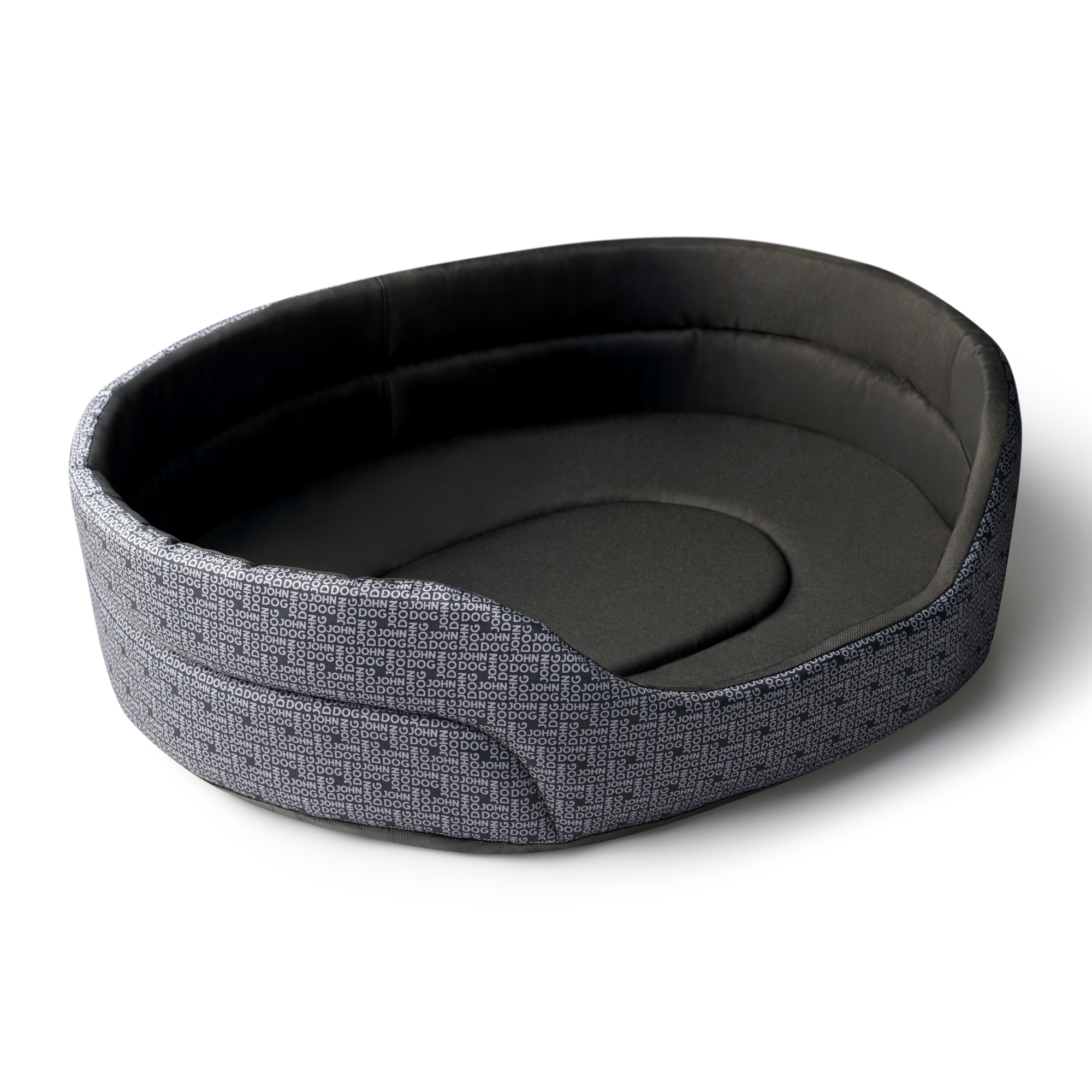 Legowisko owalne z printem „John Dog” to eleganckie posłanie dla psa, które łączy w sobie wygodę, funkcjonalność i oryginalny design. To idealne miejsce do odpoczynku dla średnich i dużych czworonogów, które cenią sobie wygodę podczas snu i relaksu. Charakterystyczne podwyższone boki zapewniają poczucie bezpieczeństwa i komfortu, podczas gdy jeden obniżony bok umożliwia łatwe wejście do legowiska. Cienki, wyjmowany materac dopasowuje się do kształtu ciała pupila, oferując optymalne wsparcie dla ciała i kręgosłupa. Klasyczne połączenie czerni z oryginalnym printem John Dog sprawia, że to stylowe legowisko dla psa idealnie dopasowuje się do różnych wnętrz. Możliwość zestawienia z innymi produktami z kolekcji pozwala stworzyć kompletny, spójny zestaw akcesoriów dla zwierzęcia.