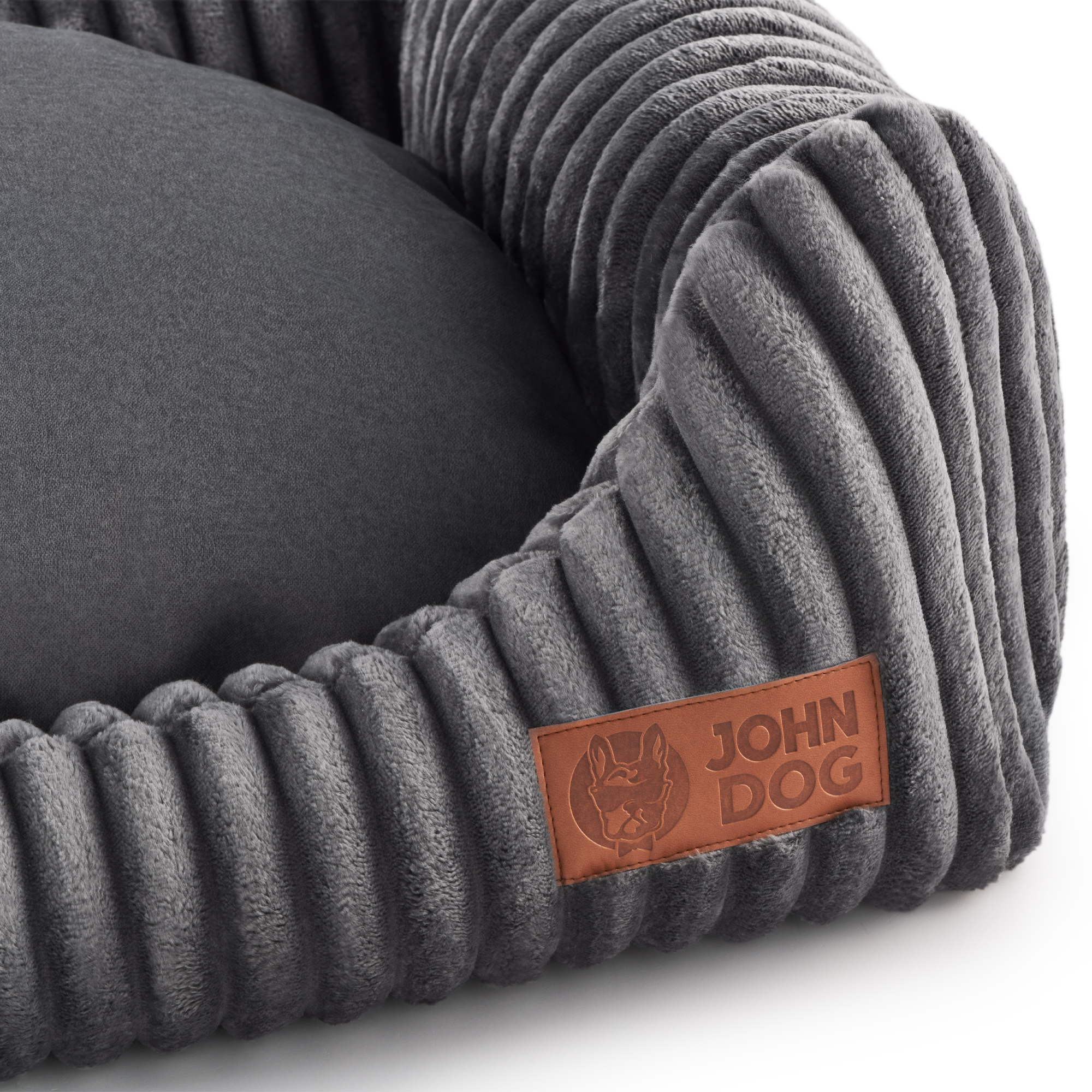 Wygodne legowisko w formie kanapy John Dog to idealne rozwiązanie dla psów ceniących sobie komfort podczas odpoczynku. Wykonane z prążkowanej tkaniny w eleganckim szarym kolorze, wyposażone w miękką wyjmowaną poduszkę easy clean. Podwyższone boki pełnią funkcję oparcia, zapewniając czworonogowi poczucie bezpieczeństwa, a uniwersalna kolorystyka sprawia, że legowisko doskonale wpasuje się w każde wnętrze – od klasycznego po nowoczesne. Wyprodukowane w Polsce z dbałością o każdy detal.