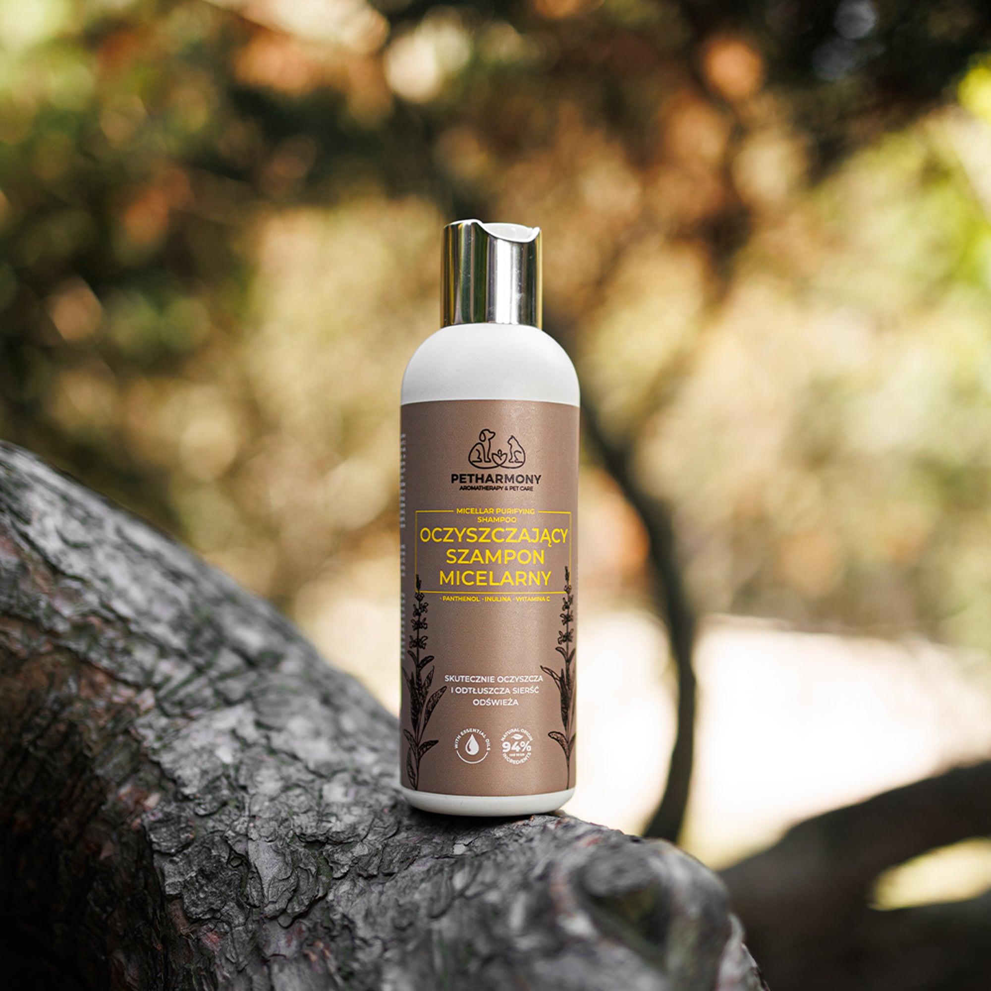 Stworzony na bazie łagodnych substancji myjących pochodzących z orzecha kokosowego. Dzięki micelarnej formule skutecznie usuwa uporczywe zanieczyszczenia ze skóry i sierści, zapewniając ich dokładne oczyszczenie i przygotowanie do kolejnych zabiegów pielęgnacyjnych. Zawiera inulinę – naturalny prebiotyk, który wygładza oraz wspiera właściwy mikrobiom skóry. Formuła wzbogacona jest o łagodzącą prowitaminę B5 i antyoksydacyjną witaminę C. Szampon wyróżnia się unikalną mieszanką olejków eterycznych: z szałwii, rozmarynu, trawy cytrynowej i pelargonii, które odświeżają i działają aromaterapeutycznie. Pojemność butelki: 200 ml.