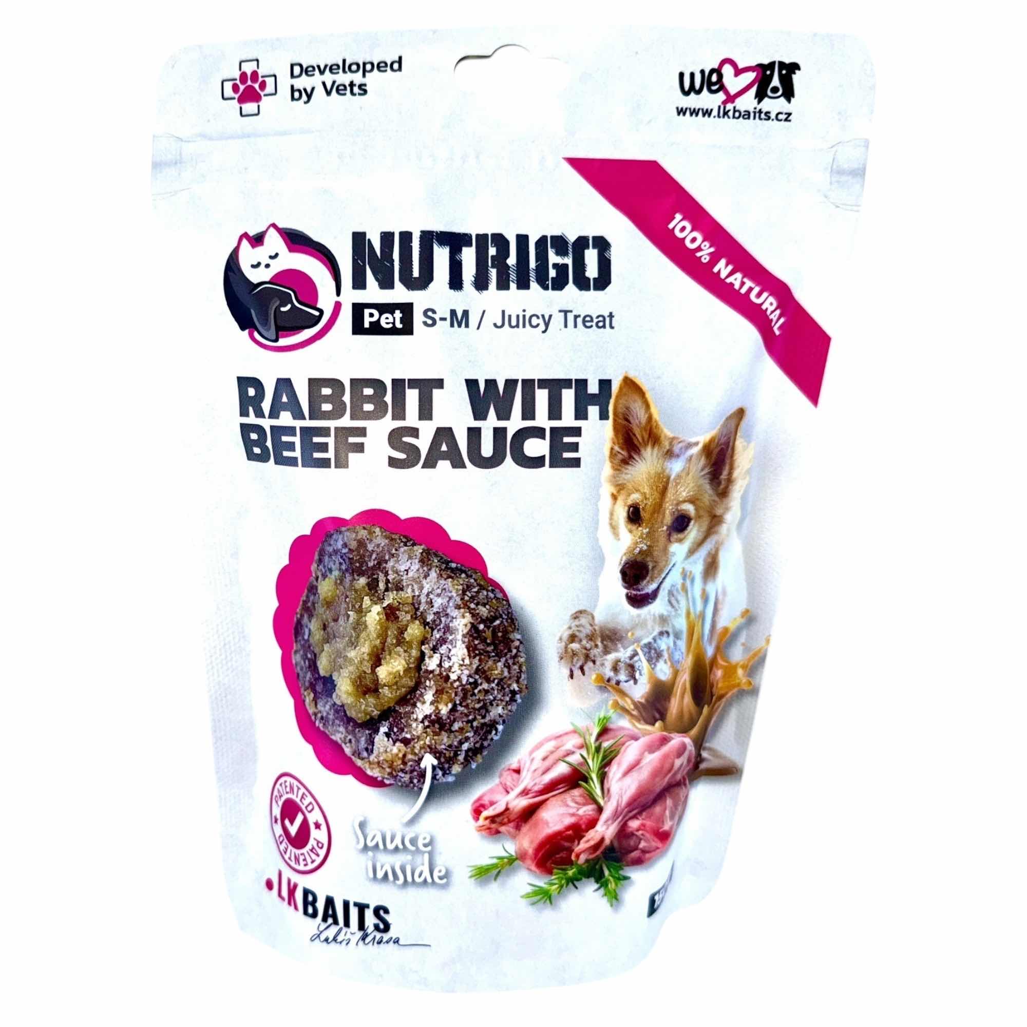 Nutrigo Juicy Treat to starannie dobrane mięso oraz dodatki. Przysmaki w kształcie kuleczek, które kryją w sobie niezwykle smaczny i tajemniczy sekret! Ukryty wewnątrz płynny sos sprawi, że Twój pies, zaskoczony tym co właśnie zjadł będzie chciał więcej i więcej, a Ty wiesz, co dla nieg dobre. Nutrigo Juicy Treat to niespodzianka z każdym kęsem. Świetnie sprawdzi się jako przysmak treningowy czy też nagroda po spacerze. Czysty skład, smakowite mięso, bez zbędnych dodatków, konserwantów czy barwników i do tego ta pyszna niespodzianka w środku – Nutrigo ma to wszystko!