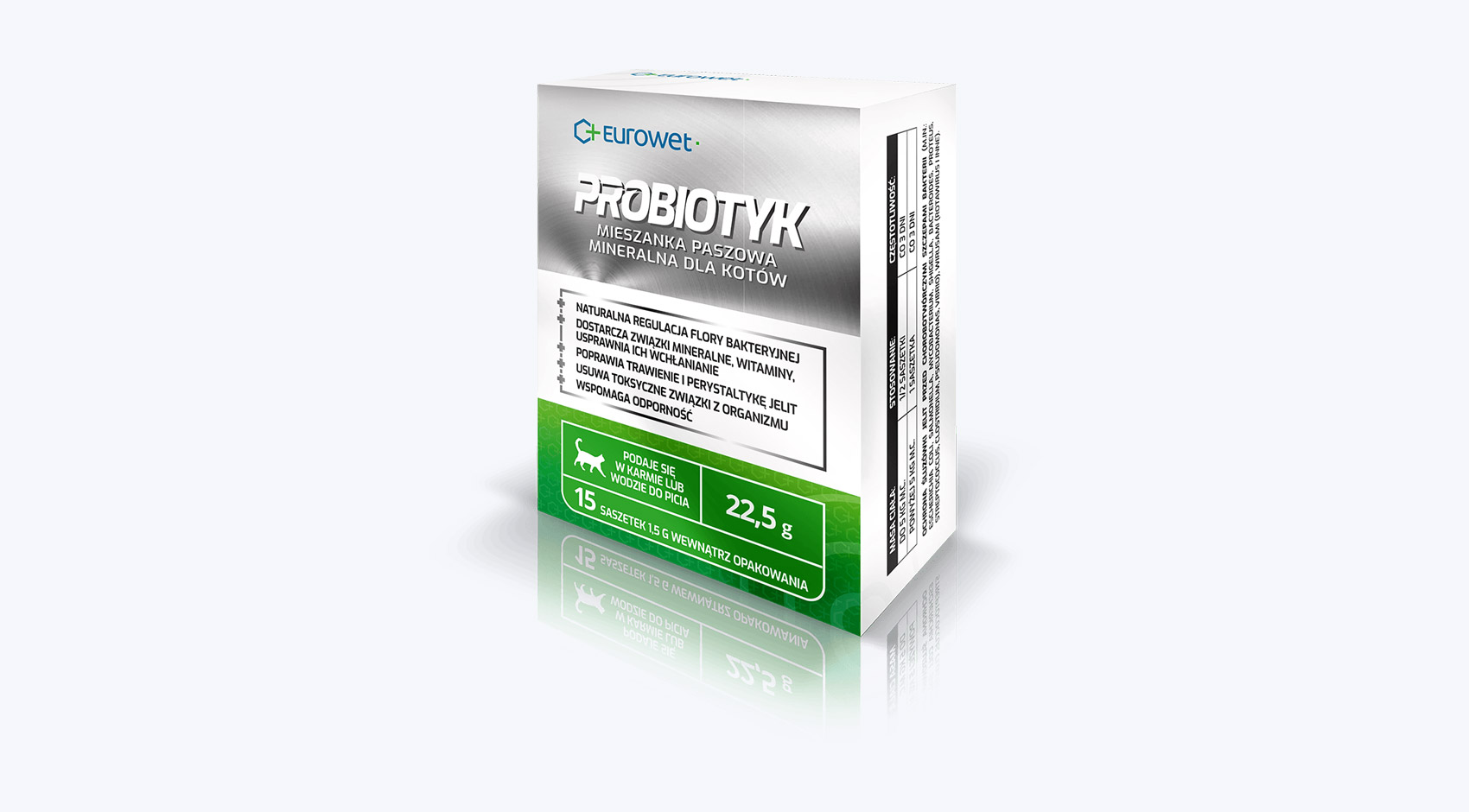 Naturalna regulacja flory bakteryjnej dla kotów. Probiotyk dla kotów Eurowet 1 saszetka 1,5 g.