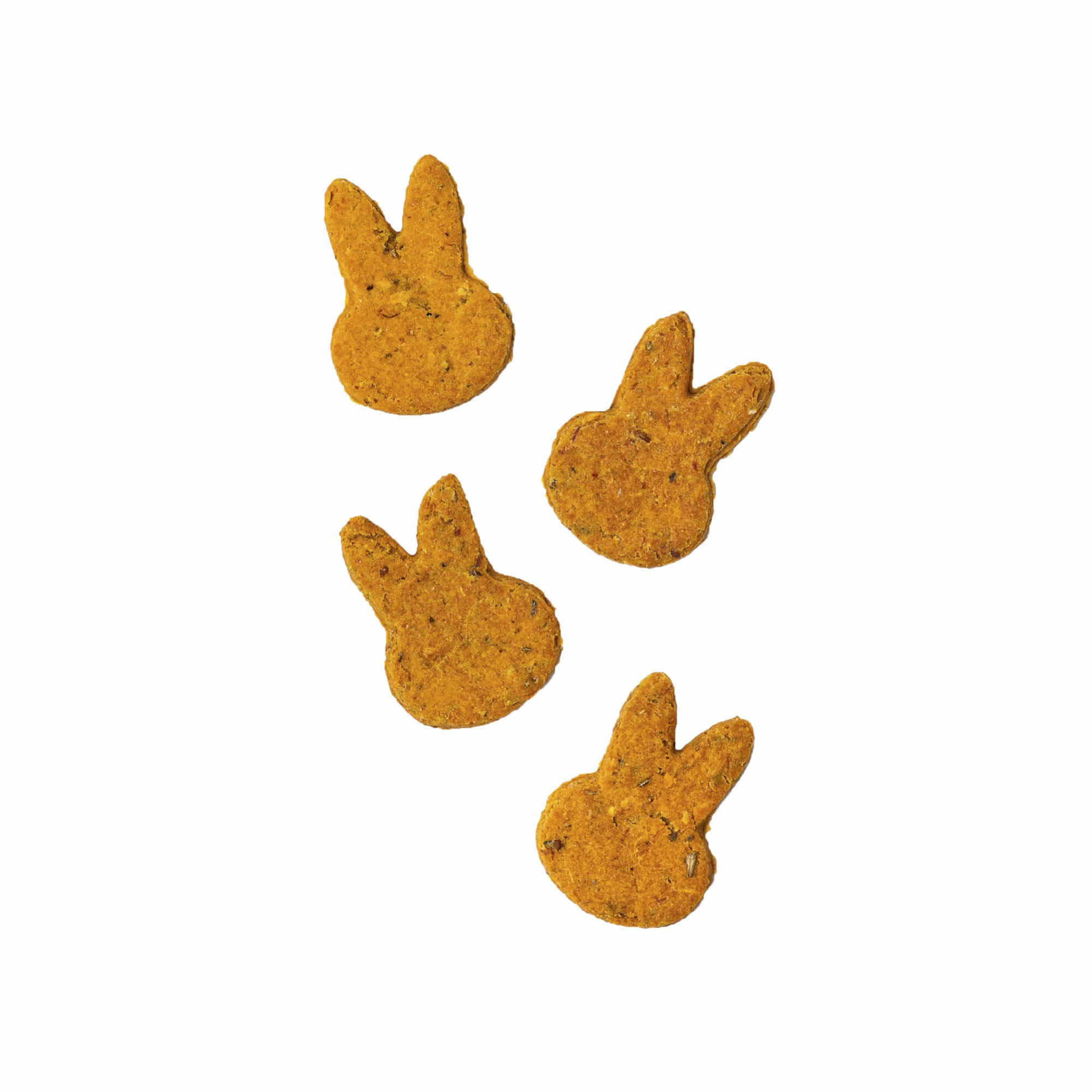 Królicze ciasteczka stanowią idealną przekąskę dla szczeniaków, psich seniorów, alergików i psiaków z problemami układu pokarmowego.