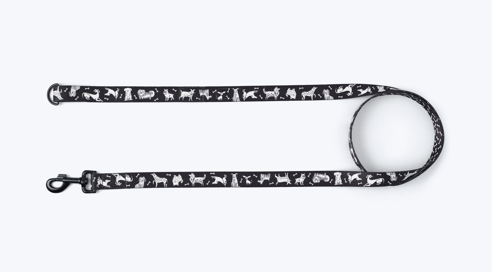 Krótka smycz dla psa z oryginalnym, czarno-białym nadrukiem komiksowym. Świetna nie tylko na pierwsze spacery, kiedy oswajasz pupila z nową przestrzenią, ale również później, gdy zapewniasz mu bezpieczeństwo, mając go obok siebie.