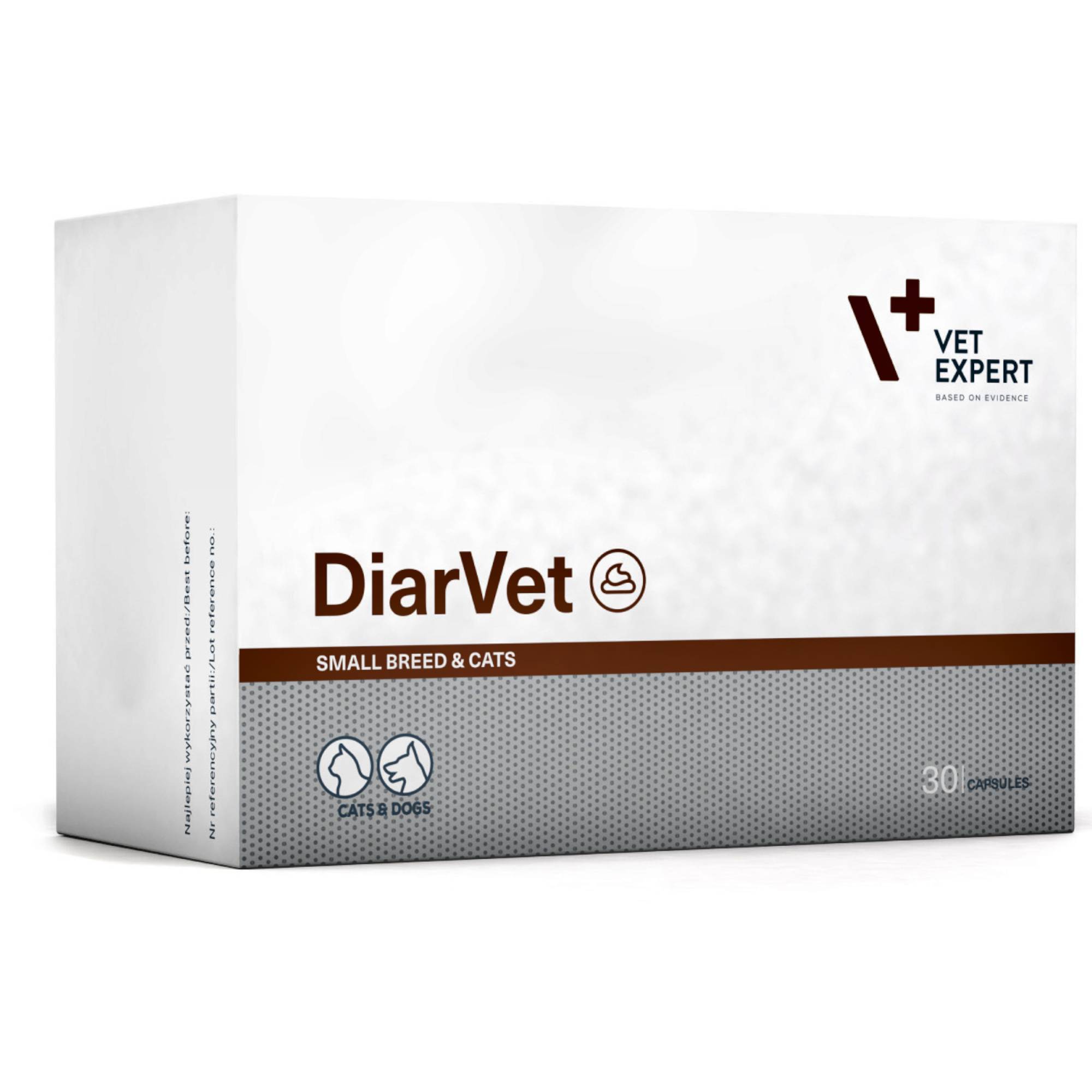 DIARVET SMALL BREED & CATS to innowacyjny preparat wspomagający w biegunce, stworzony specjalnie z myślą o kotach i psach małych ras. Jest to pierwszy na rynku suplement w formie wygodnych kapsułek twist-off, który znacząco ułatwia podawanie zwierzętom. Formuła preparatu opiera się na naturalnych i bezpiecznych składnikach, które kompleksowo wspierają układ pokarmowy podczas zaburzeń trawiennych. Preparat dostępny jest w opakowaniach zawierających 6 lub 30 kapsułek twist-off.