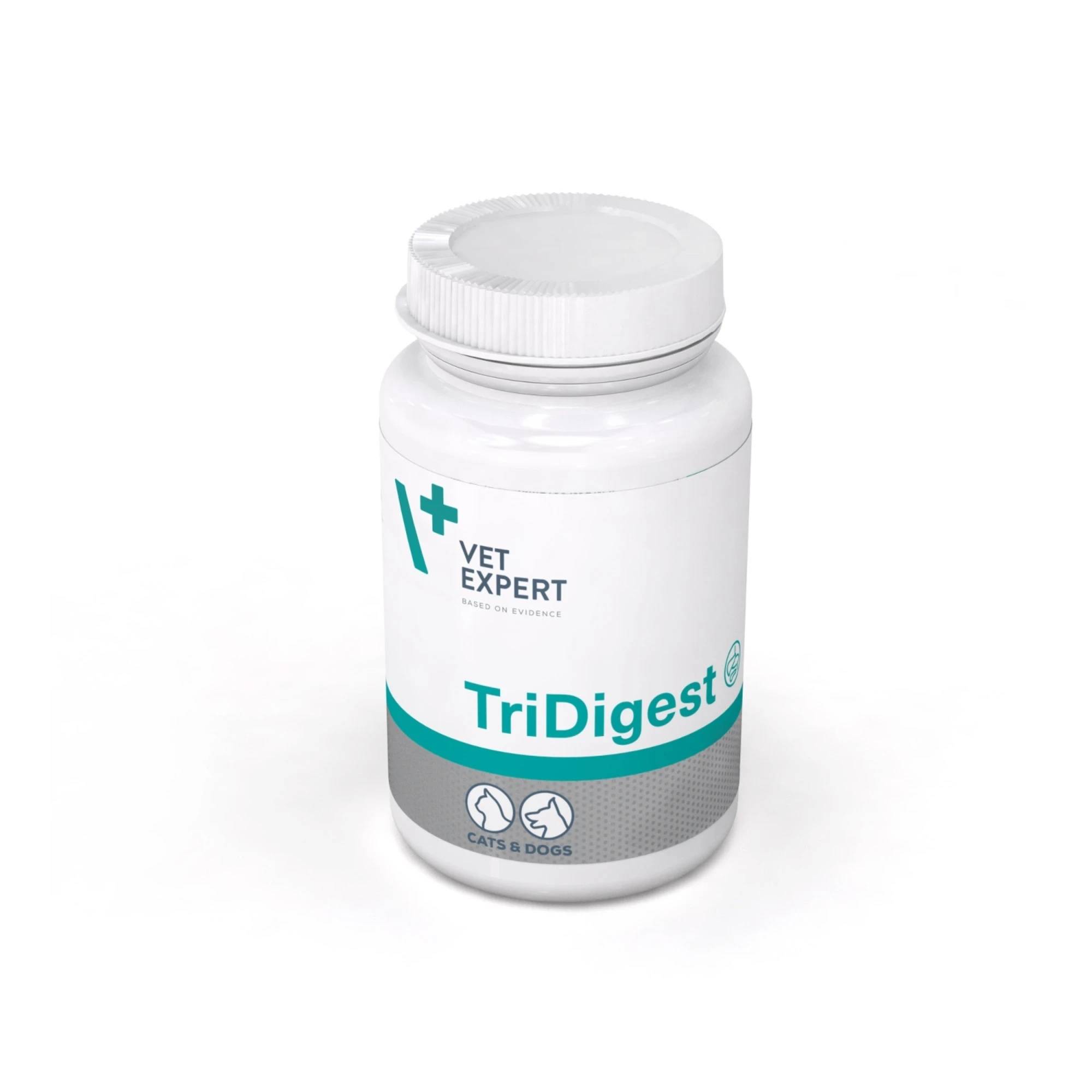 VET EXPERT TRIDIGEST to preparat na trawienie dla psów i kotów, który wspiera naturalne procesy prowadzące do wydzielania soku żołądkowego, żółci oraz soku trzustkowego. Produkt wpływa korzystnie na prawidłowe funkcje układu pokarmowego i jest polecany dla zwierząt z zaburzeniami trawienia, a także w przypadku utrudnionego odpływu żółci. Dzięki odpowiednio dobranym składnikom wspomaga trawienie białek, tłuszczów i węglowodanów, co może sprzyjać lepszemu wykorzystaniu składników odżywczych z pożywienia.
