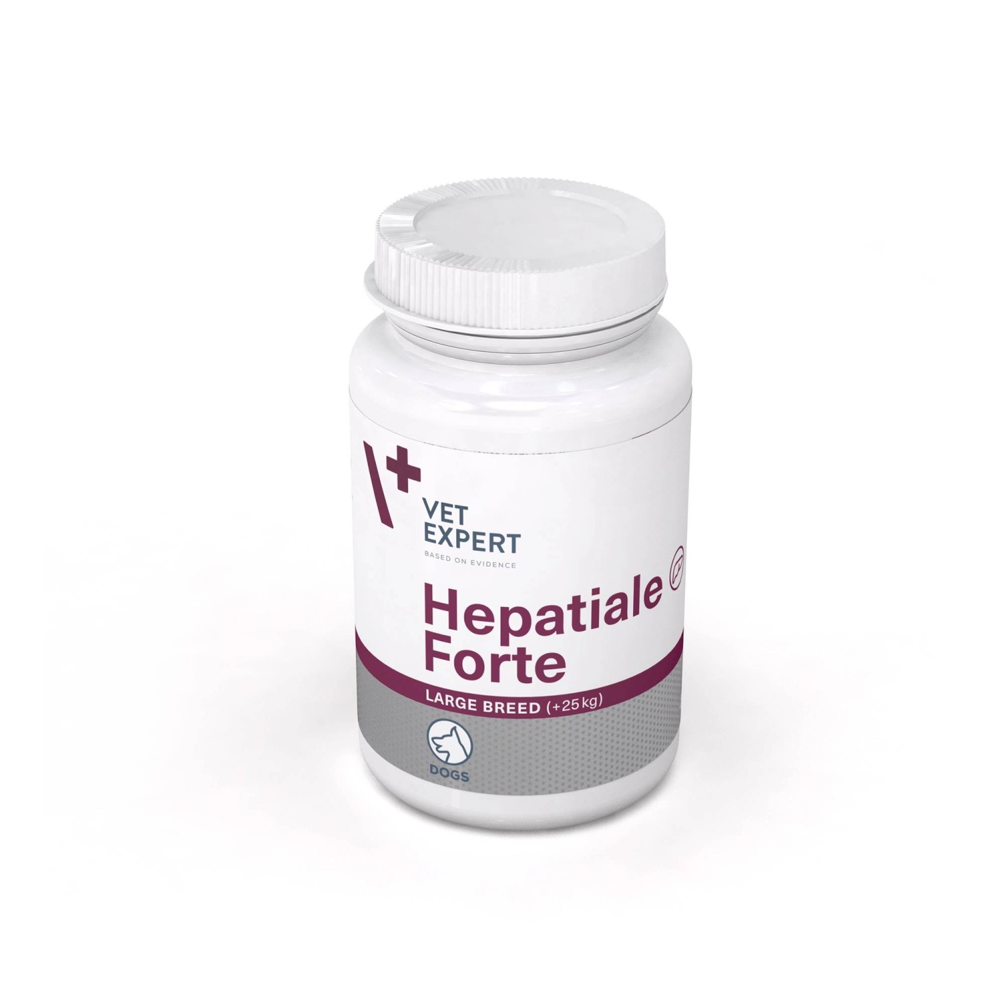 VET EXPERT Hepatiale Forte Large Breed to preparat dla psów dużych ras, który wspomaga prawidłowe funkcjonowanie wątroby i może być stosowany przy podejrzeniu jej zaburzeń oraz jako wsparcie w przewlekłej niewydolności wątroby. Jego działanie określane jest jako hepatoprotekcyjne, ponieważ sprzyja ochronie komórek wątroby i wspiera ich naturalną regenerację, co ma znaczenie także przy większym obciążeniu metabolicznym.