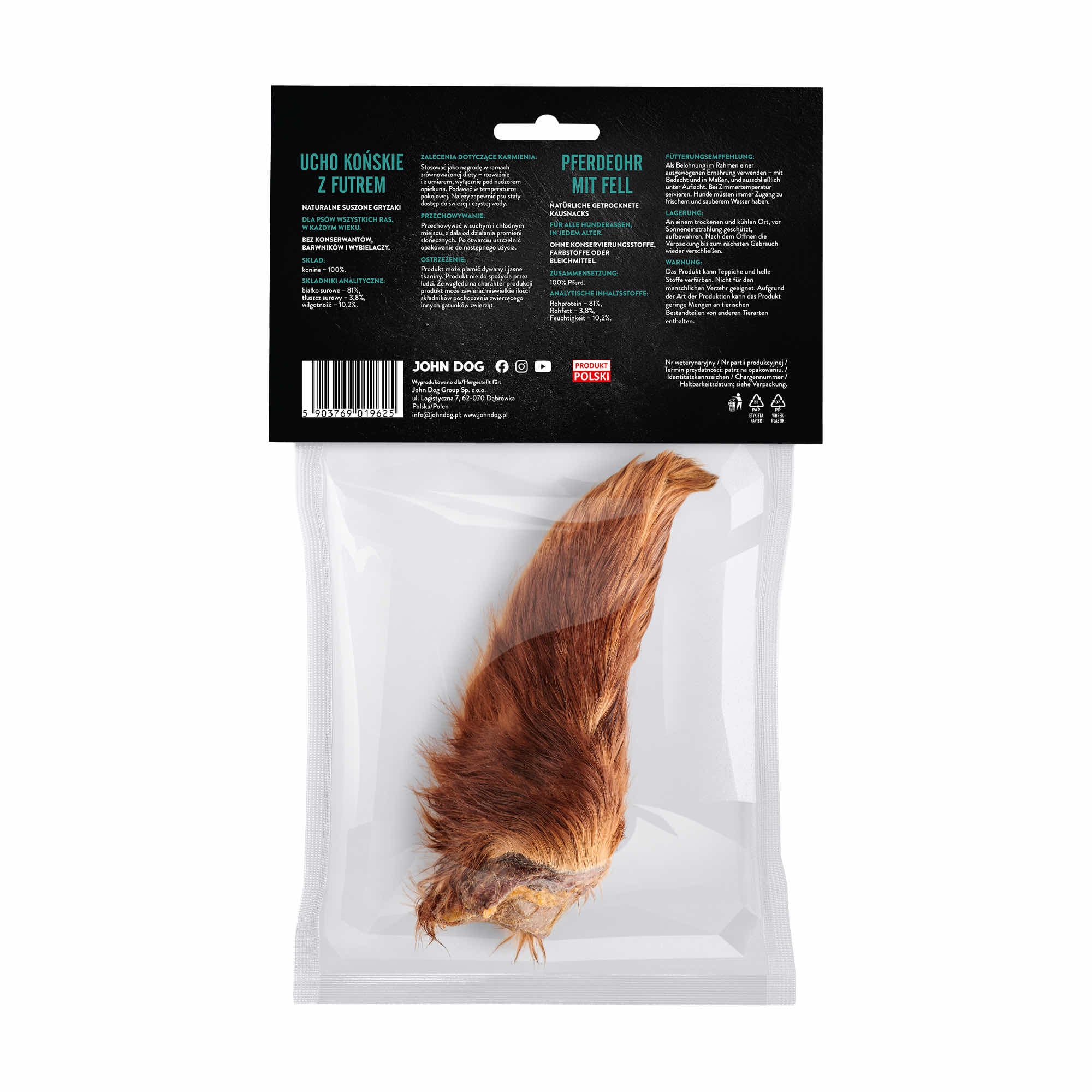 Suszone ucho końskie z futrem to uniwersalny przysmak naturalny dla psa, odpowiedni dla psów w każdym wieku – od szczeniaka po psa seniora. Szczególnie polecany jest dla psów dużych i średnich ras z silną potrzebą gryzienia, które potrzebują twardych gryzaków dla psów. Dzięki swojej monobiałkowej formule jest również idealny dla psów alergików oraz czworonogów z wrażliwym żołądkiem, które wymagają hipoalergicznych przysmaków.