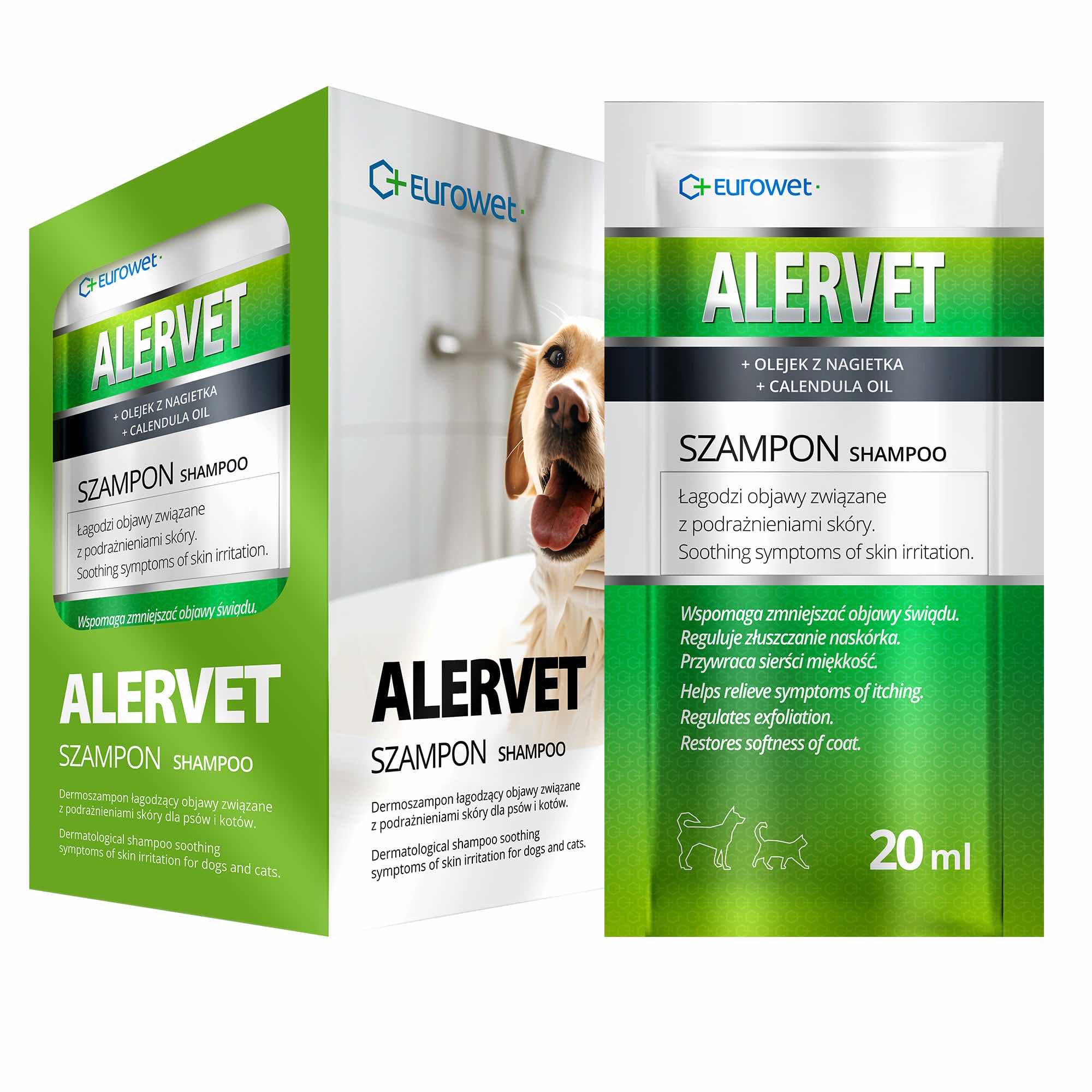 Szampon Alervet to dermokosmetyk weterynaryjny. Przywraca sierści miękkość i wspomaga łagodzenie objawów świądu poprzez korzystny wpływ na regulację procesu złuszczania naskórka oraz skład jego mikroflory. Nawilża i natłuszcza skórę oraz nabłyszcza sierść. Dzięki temu Twój pupil zyska zdrowy i piękny wygląd. Polecany do skóry wrażliwej ze skłonnością do łupieżu oraz skóry suchej.