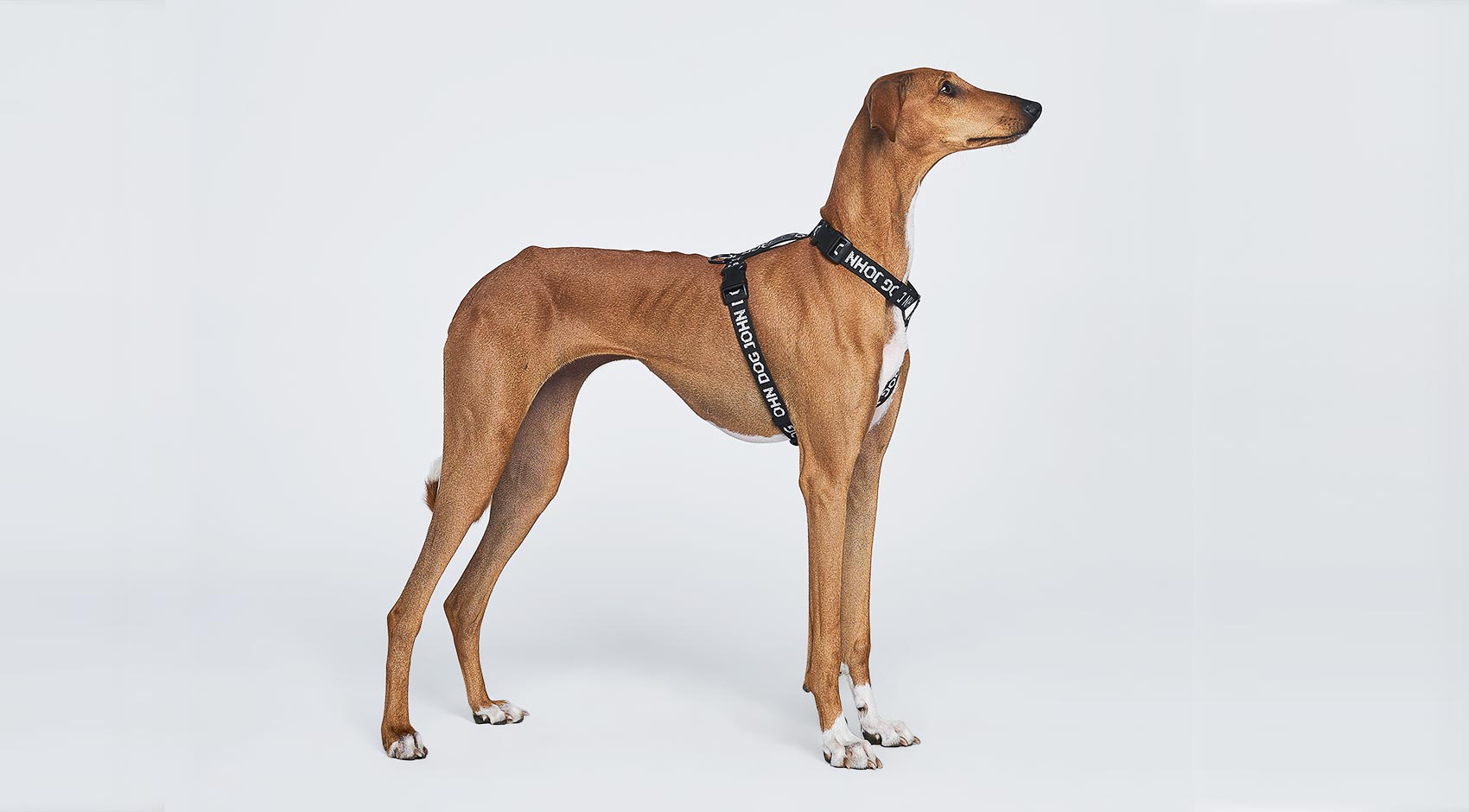 Szelki dla psa – prosty spacerowy model. Szelki dla psa typu „guard” wykonane z trwałej taśmy żakardowej sygnowanej logo John Dog. Zbudowane z dwóch pętli o regulowanym obwodzie. Jedna obejmuje klatkę piersiową, druga szyję u nasady. Smycz mocowana na grzbiecie. Nie krępują ruchów psa i zapewniają komfort w czasie spaceru.