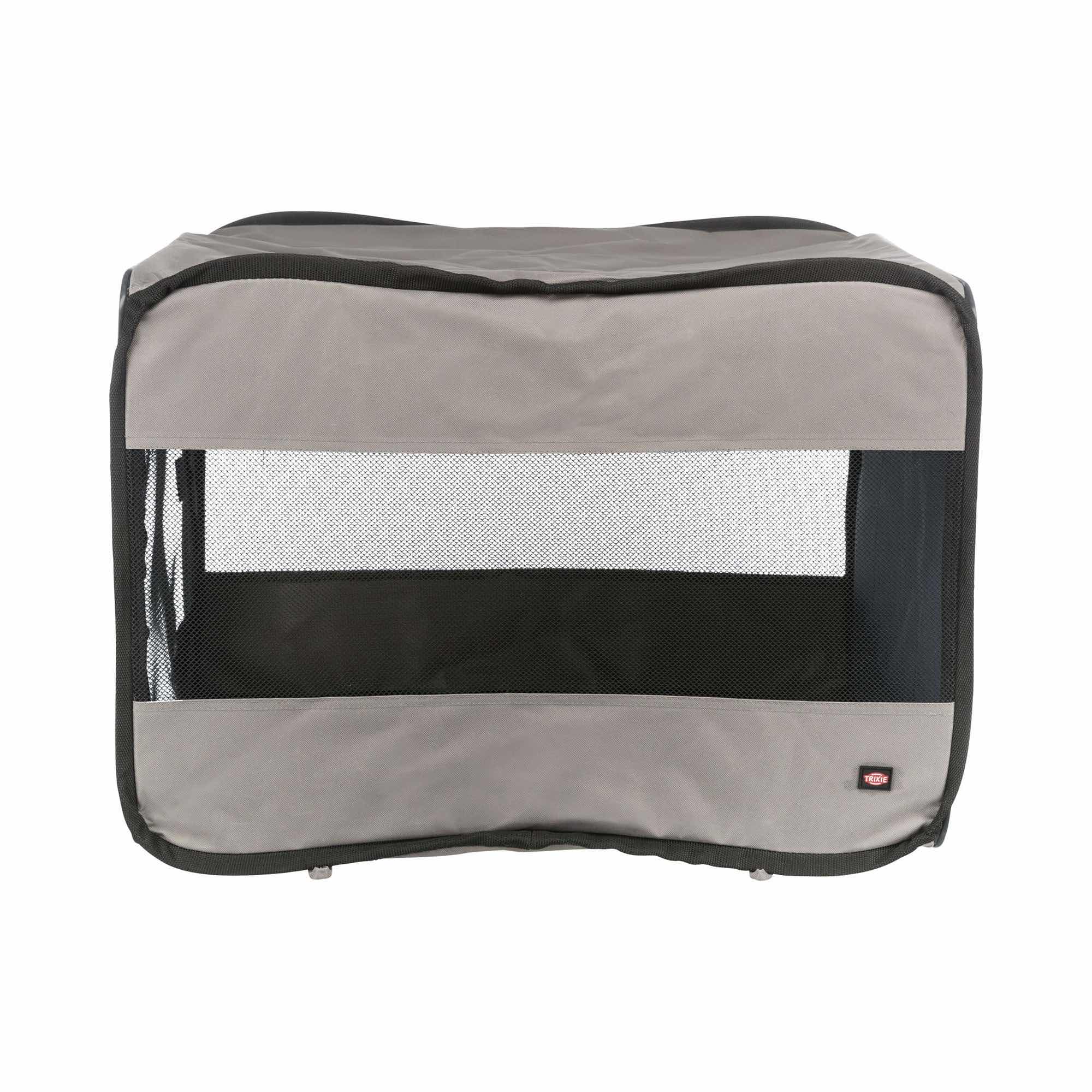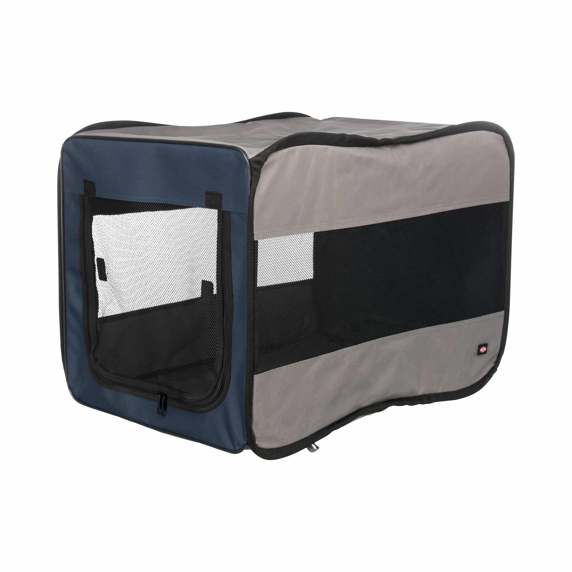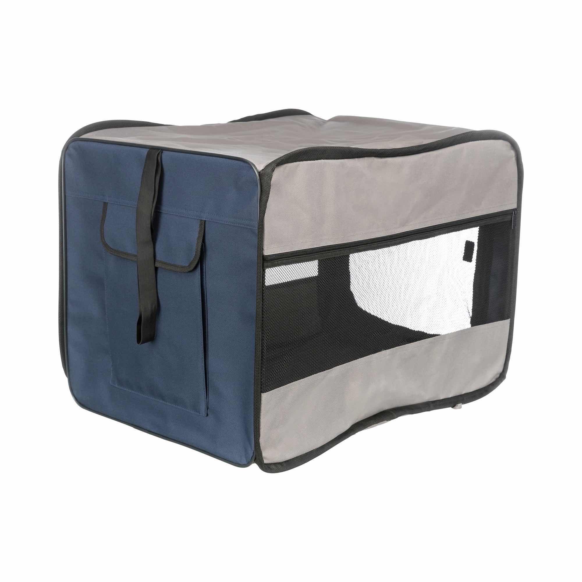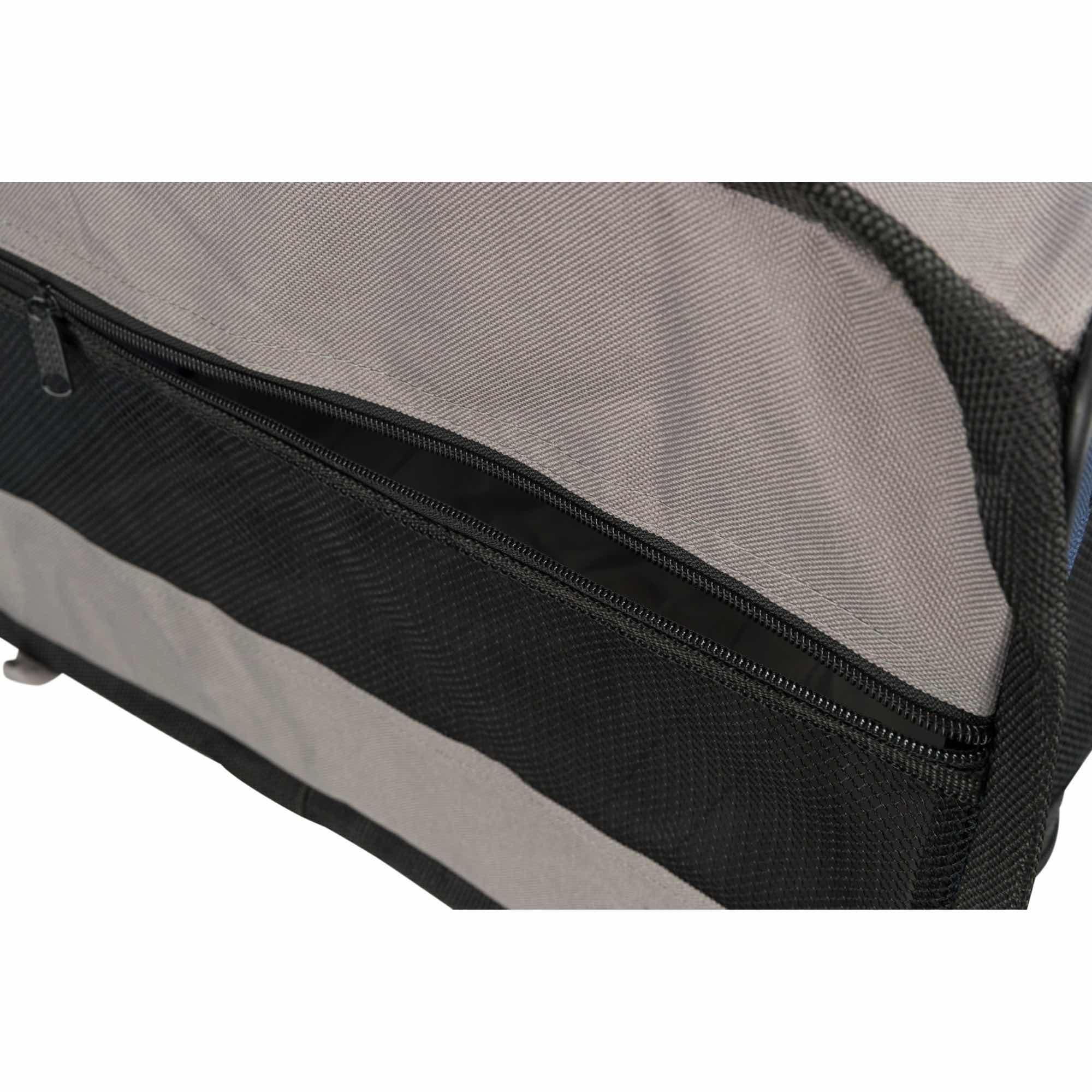 Klatka jest lekka i łatwa w przenoszeniu. Możliwość użytkowania na zewnątrz, dzięki dodatkowym klapom i sledziom. Przyszyte taśmy pozwalają na stabilne przymocowanie produktu np. w samochodzie. Całość wykonana jest z trwałego poliestru. Torba ma uniwersalny szaro-granatowy kolor i czarną siateczkę.
