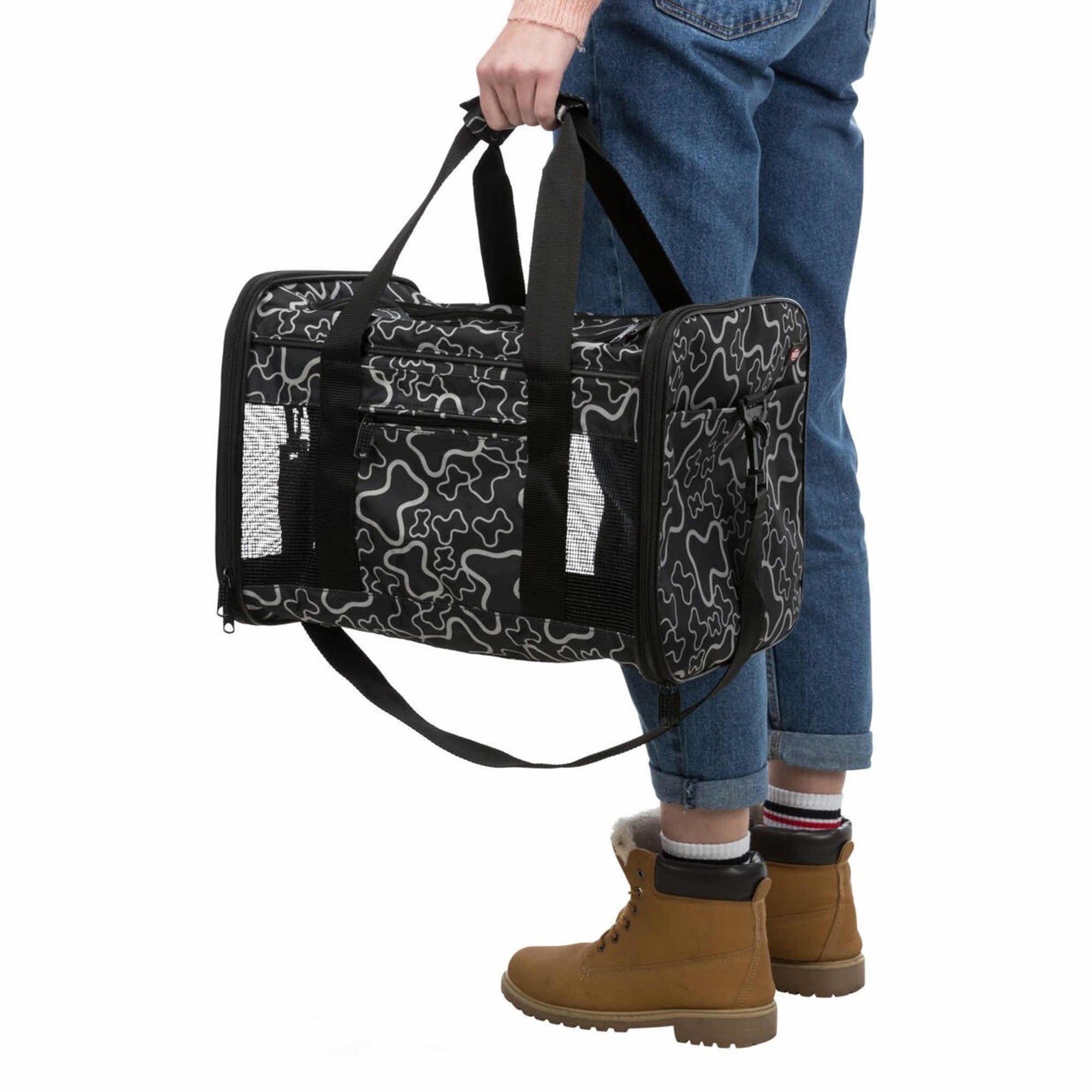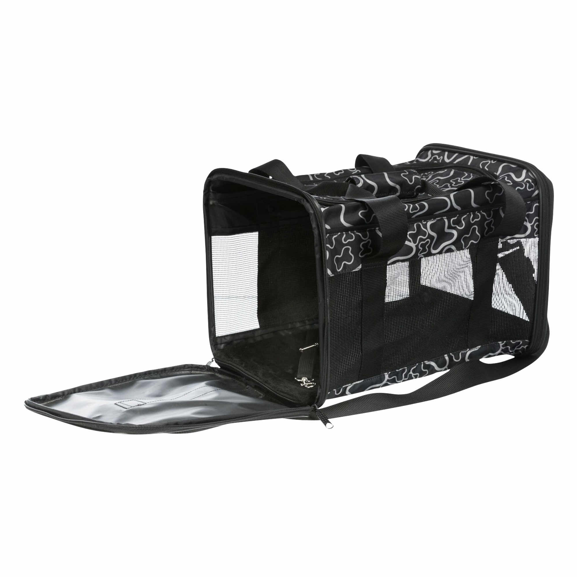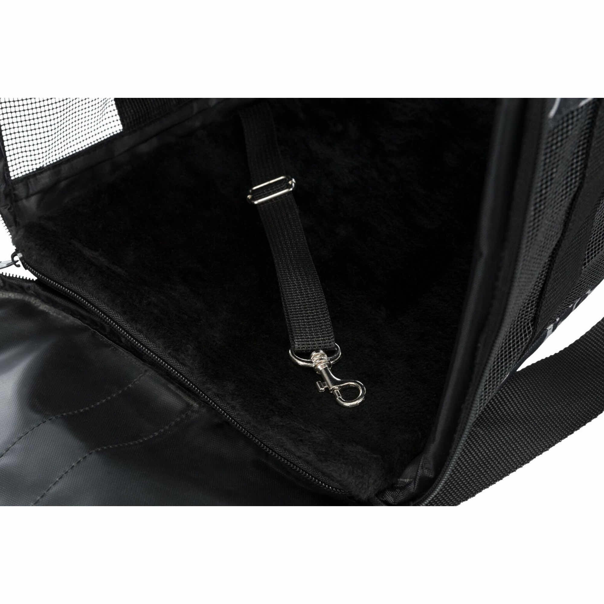Otwierana od góry, ułatwia wkładanie i wyjmowanie pupila. Wyposażona w praktyczne zewnętrzne kieszenie oraz zdejmowany pas naramienny, zapewnia wygodę podczas podróży. Dodatkowo posiada zintegrowaną krótką smycz, która zwiększa bezpieczeństwo, oraz zdejmowaną pluszową podstawę, gwarantującą komfort i wygodę zwierzakowi. Idealna na wspólne wyjazdy i codzienne przemieszczanie się.