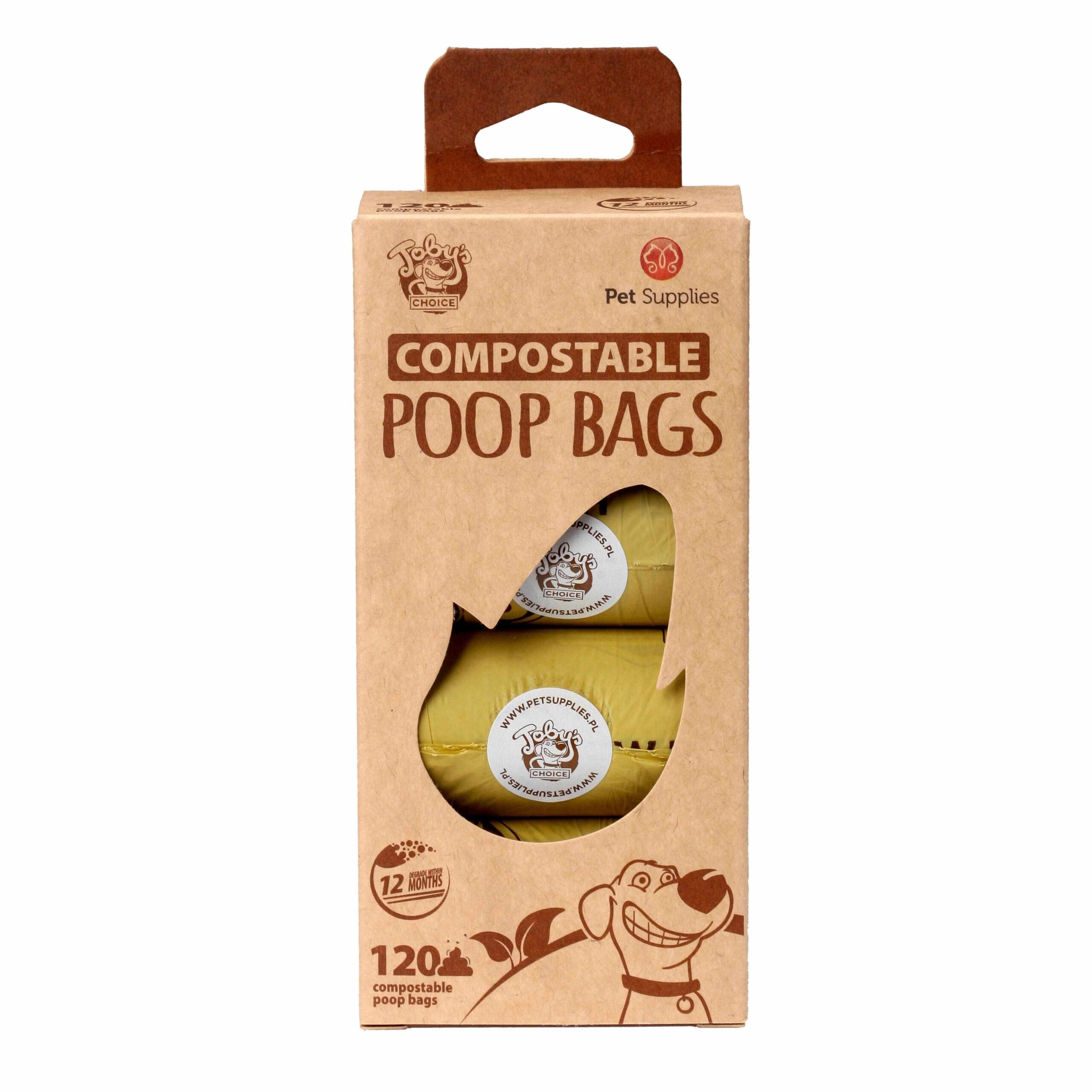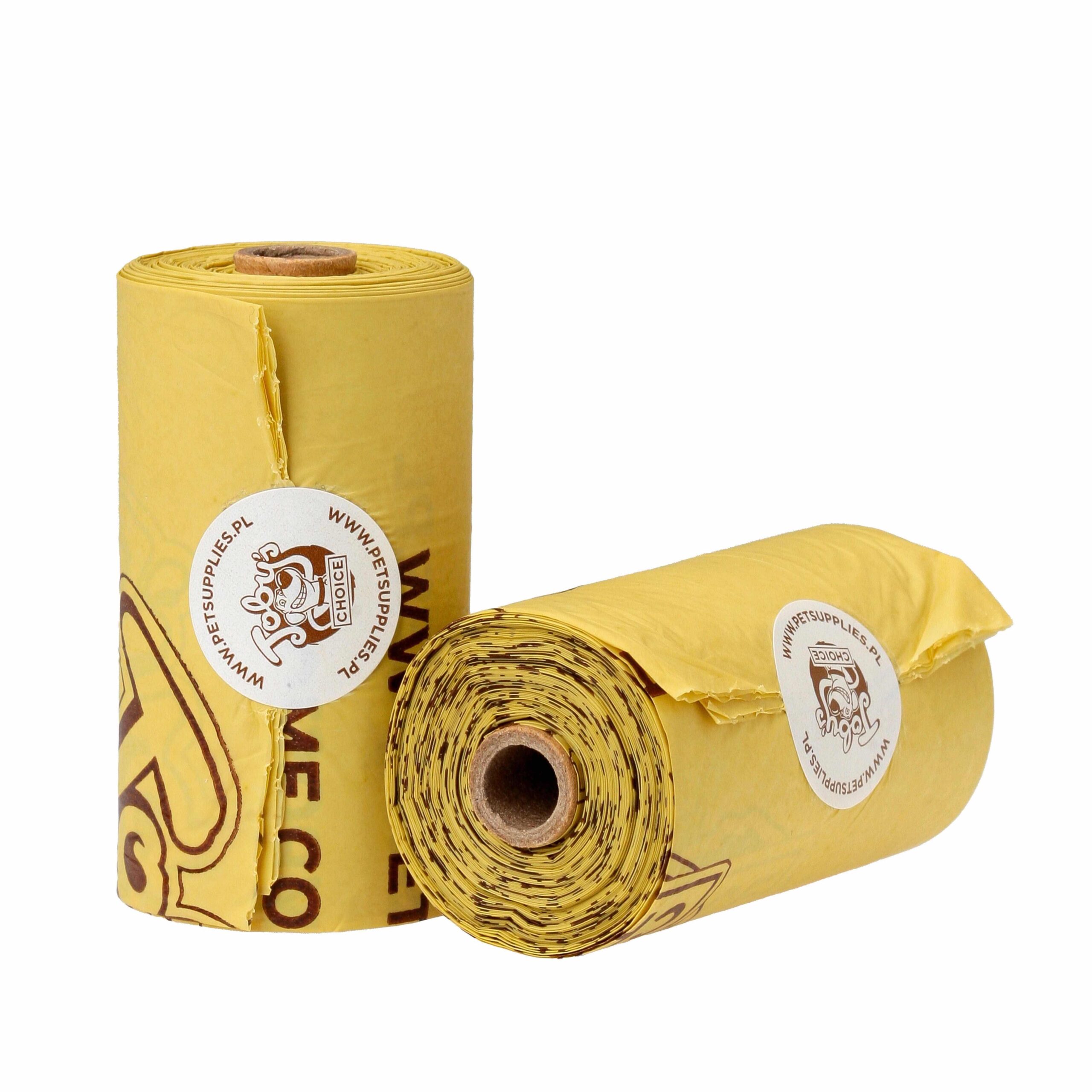 Grube i wytrzymałe worki na psie odchody. Jeden worek ma wymiar 22×32 cm. Każda z rolek to 15 żółtych, kompostowalnych woreczków. Pasują do większości dyspenserów. Żółte wykonane ze skrobi kukurydzianej, ulegają degradacji w ciągu 12 miesięcy.